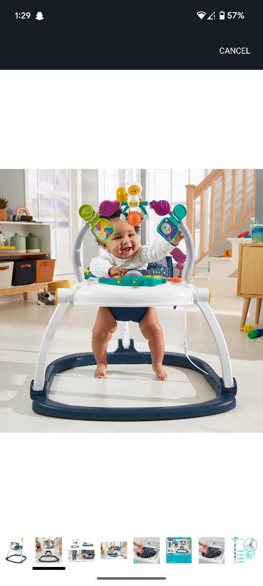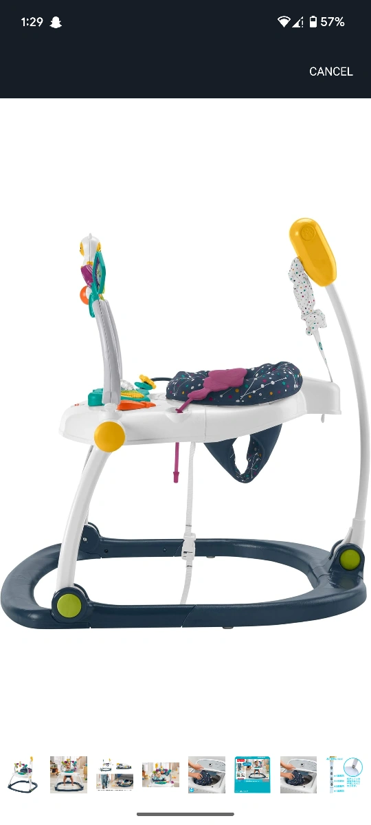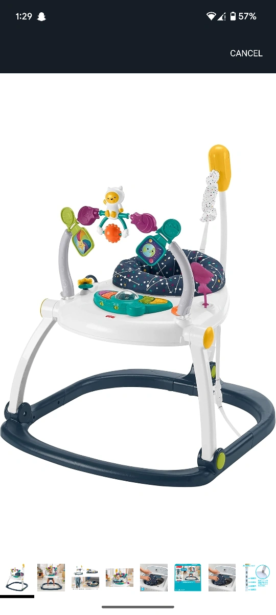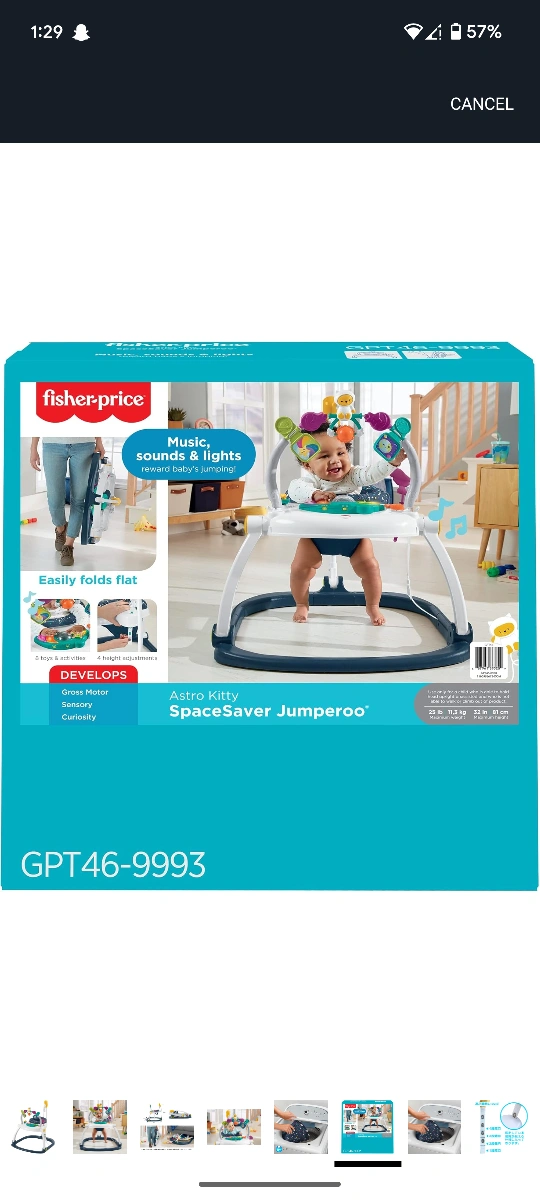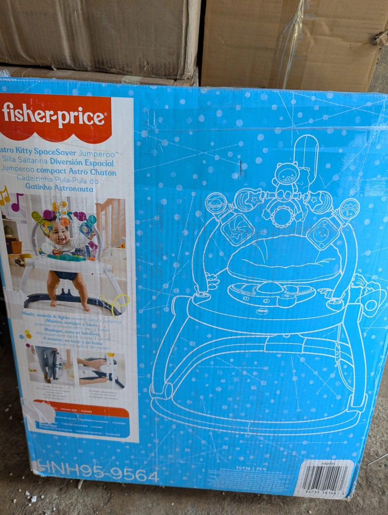 The Fisher-Price Astro Kitty SpaceSaver Jumperoo is designed to bring music, sounds, and lights to your little one's playtime! It easily folds flat for storage and develops gross motor skills, sensory exploration, and curiosity. The seat pad is machine washable, making cleanup a breeze