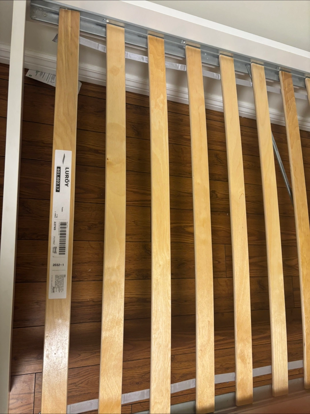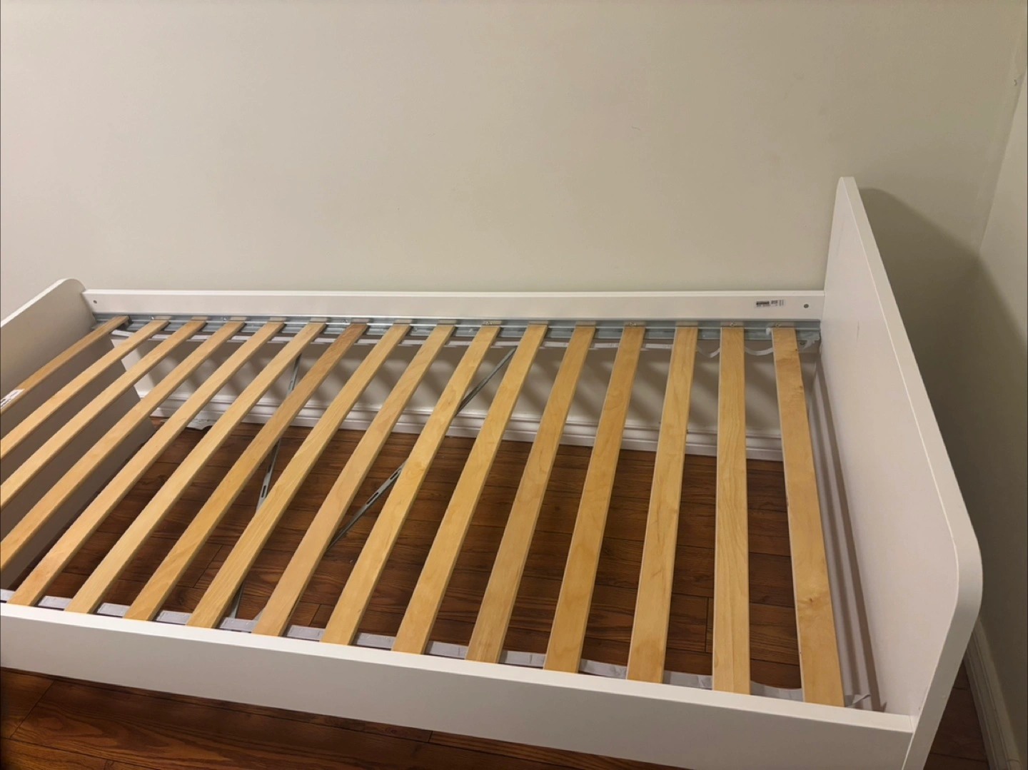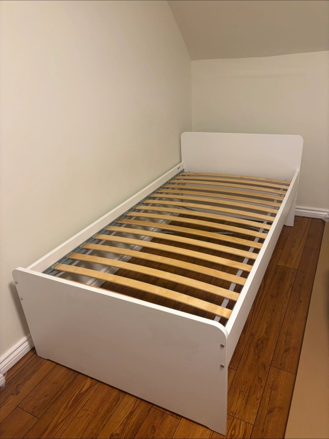 IKEA SLAKT twin bed frame with LUROY bed slats. Great condition. Used for two years and then my daughter wanted a larger bed.