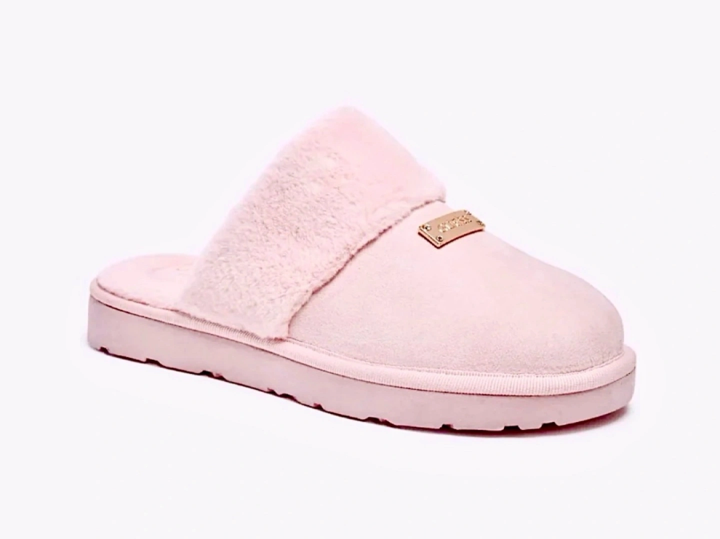 🍯🍋BRAND NEW! REG $78 GUESS Suede Shearling Mules w Gold hardware