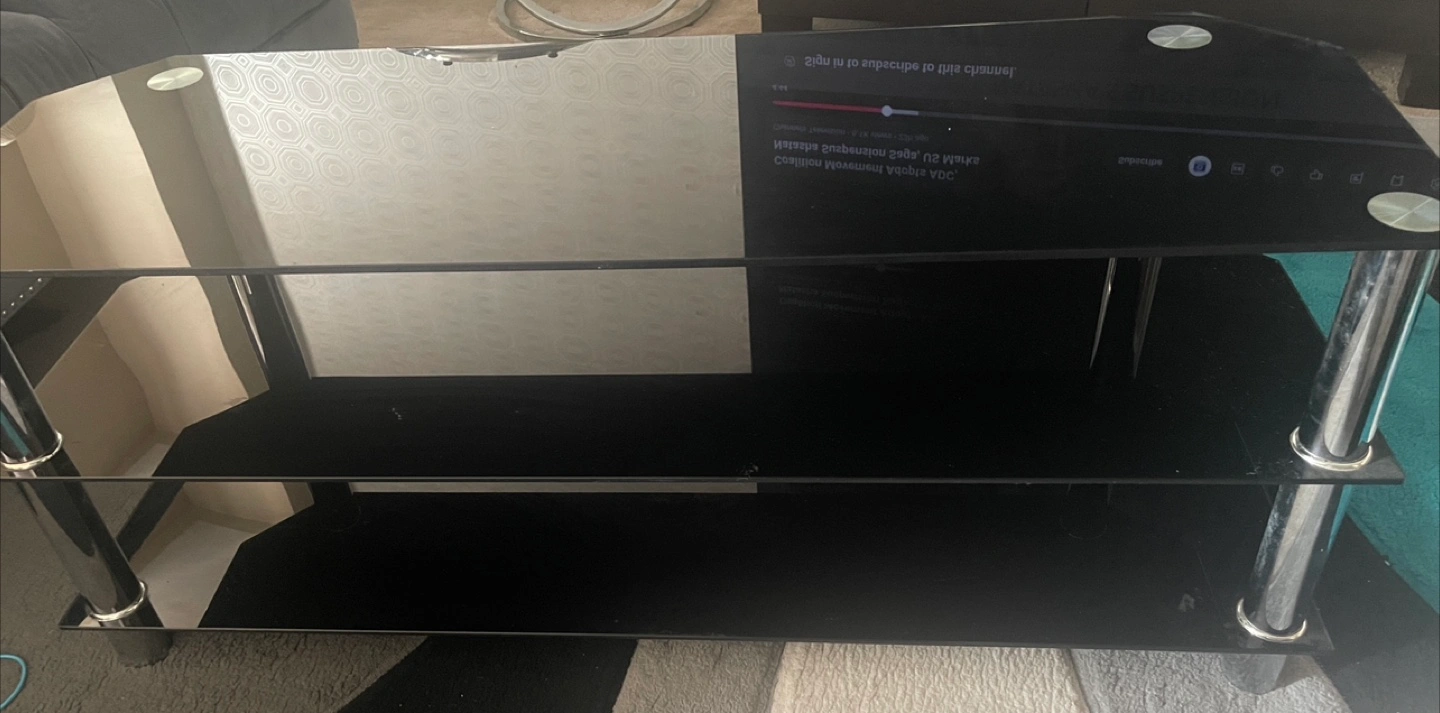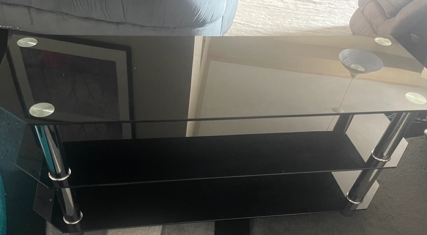 Selling a sleek black glass TV stand! It features a modern design with multiple tiers for your media devices and accessories. The stand is in great condition and ready to enhance your living room setup.Serious people only please. Price can be negotiated.MOVING SALE. NEED GONE.PICKUP ONLY price is negotiable.