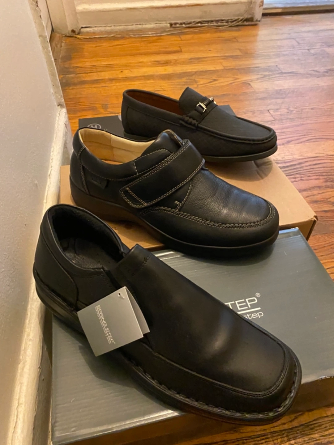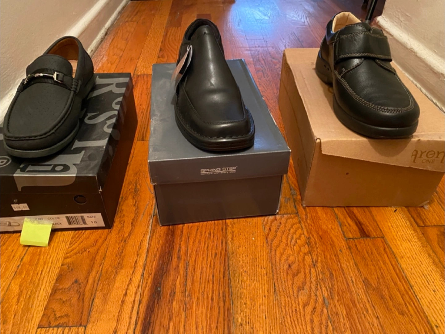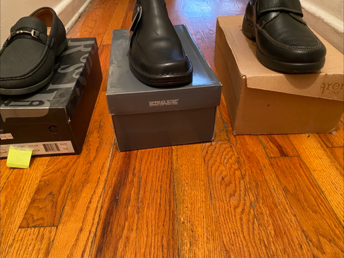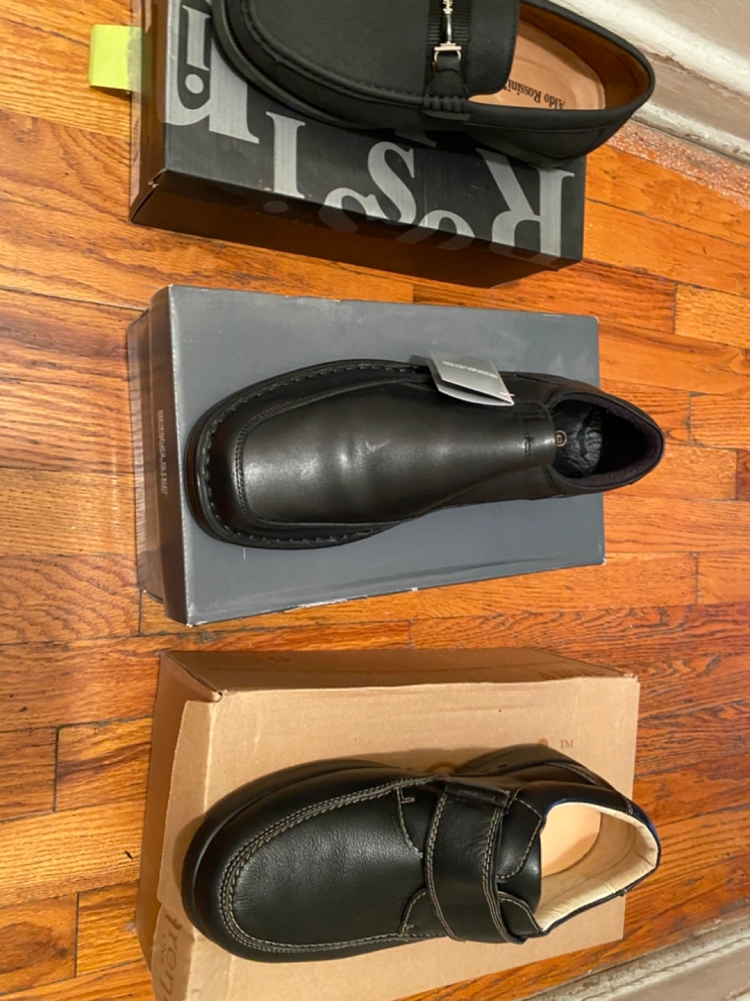 Selling three pairs of men's shoes in size 10. You'll get an Aldo Rossini pair, a Spring Step pair, and a pair from Arena. All come with their original boxes!