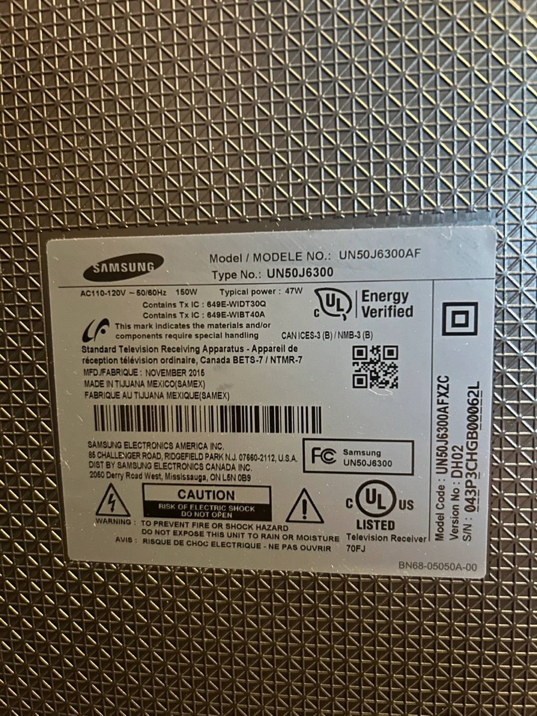 Manufacturer # UN50J6300AFXZA