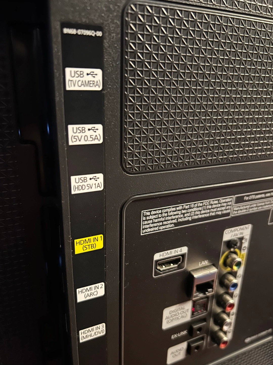 Ports 1 component video in; 1 composite video in; 1 digital audio output; 1 Ethernet (RJ-45); 4 HDMI in; 3 USB