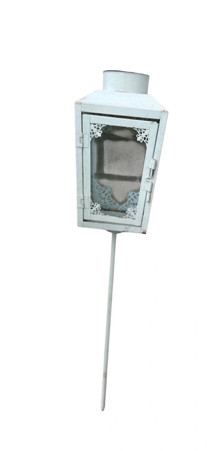 Solar Powered Outdoor Lantern. White, need some cleaning. Ideal for backyards where you can pick the lantern in the grass/soil. Just got it today from an other Karroter, but realized that it would be more suited for a backyard rather than a balcony. Thx!