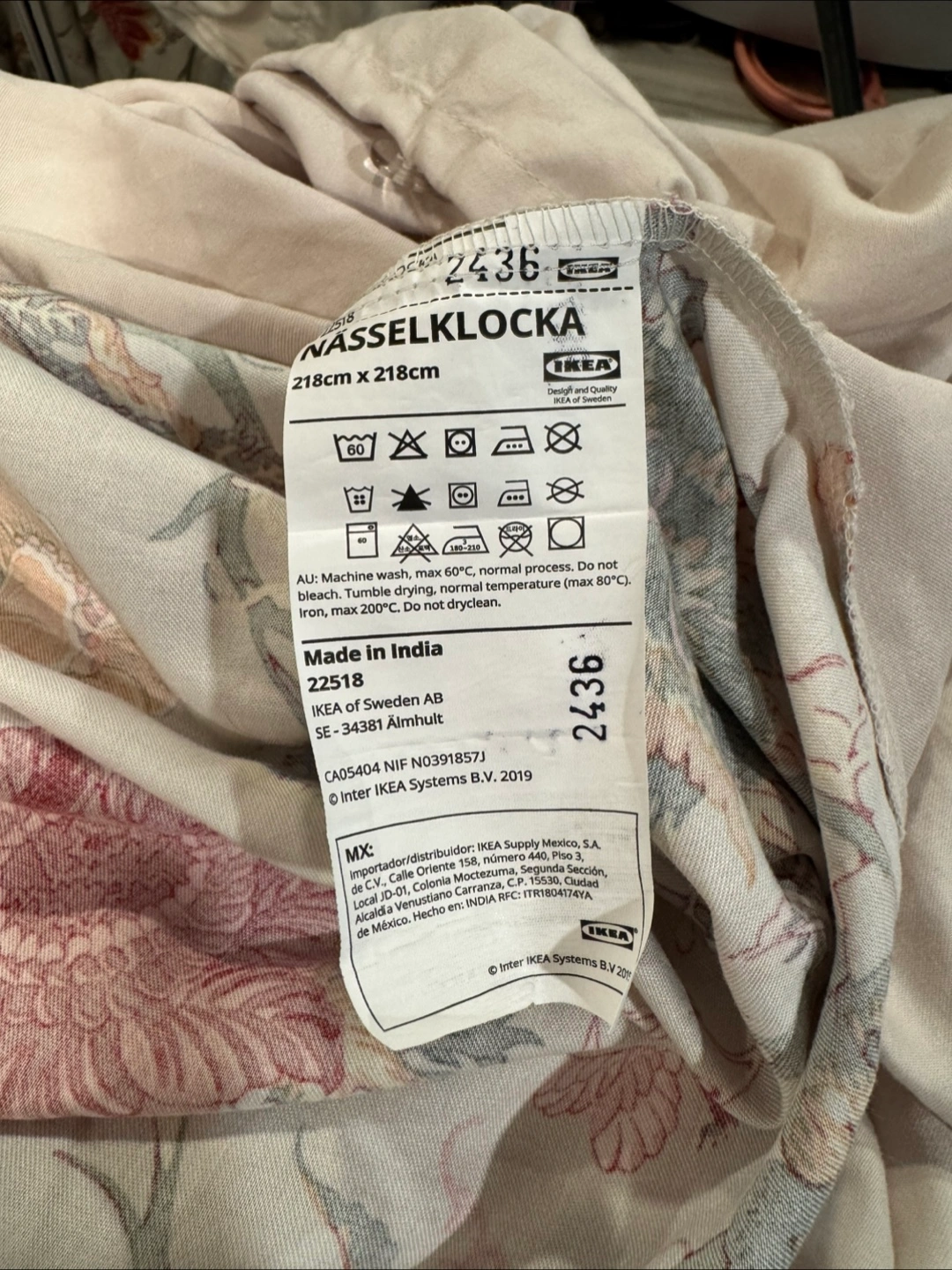 IKEA NÄSSELKLOCKA set includes duvet cover , 2 pillowcases and fitted sheet. Beautiful and super soft mix of cotton and viscose. The set features a beautiful floral pattern. This set would add a touch of elegance to any bedroom.