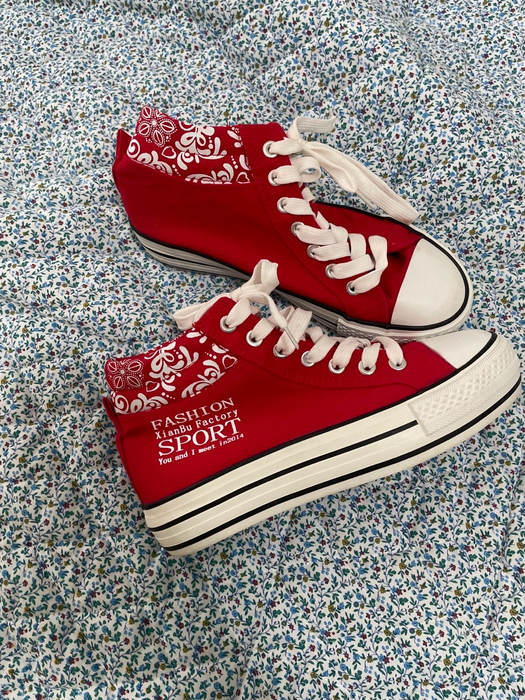 Selling a pair of red Fashion XianBu Factory Sport sneakers. They're in good condition and are a size 37. The soles measure approximately 9 inches. Perfect for adding a pop of colour to your wardrobe!