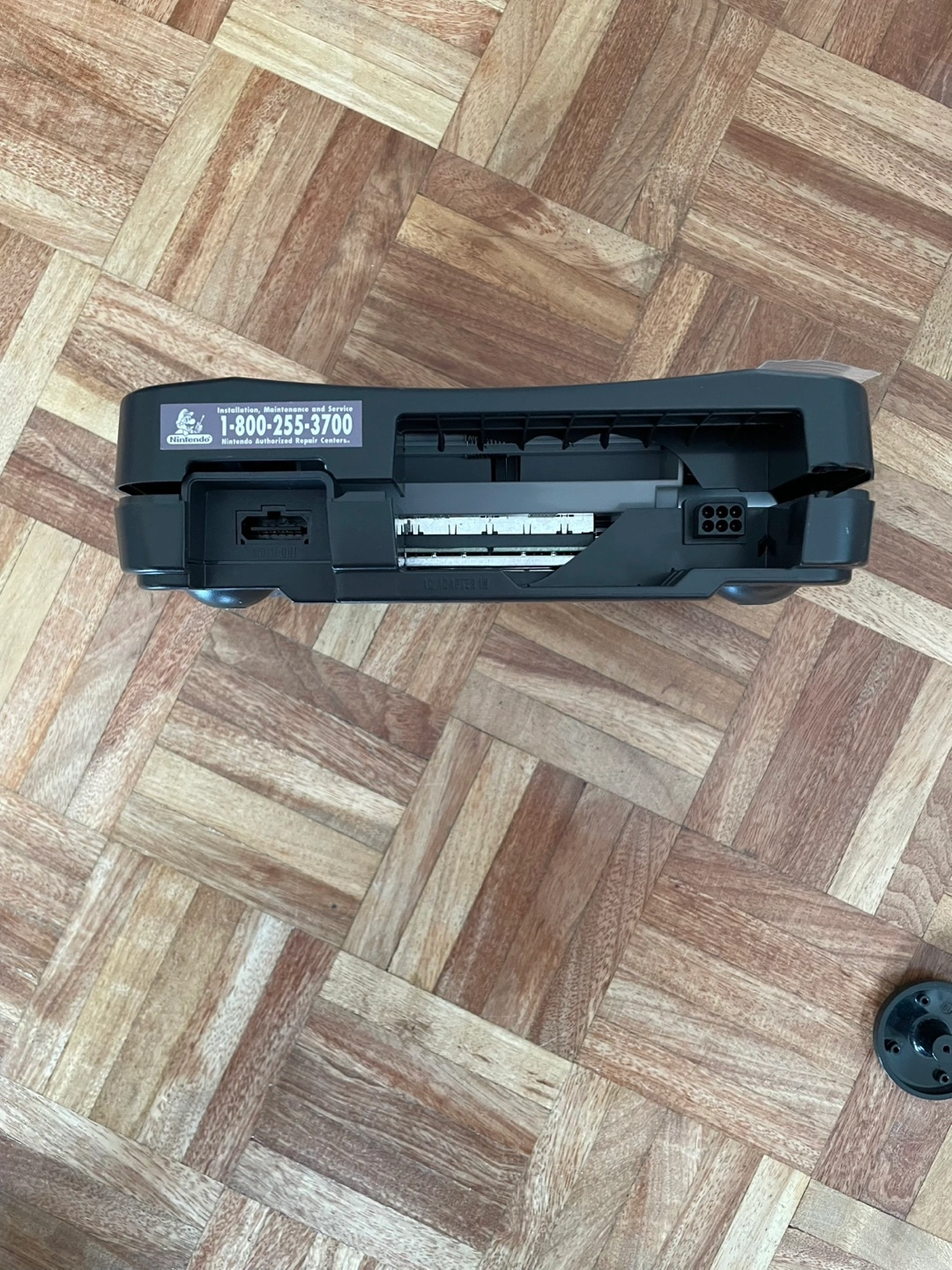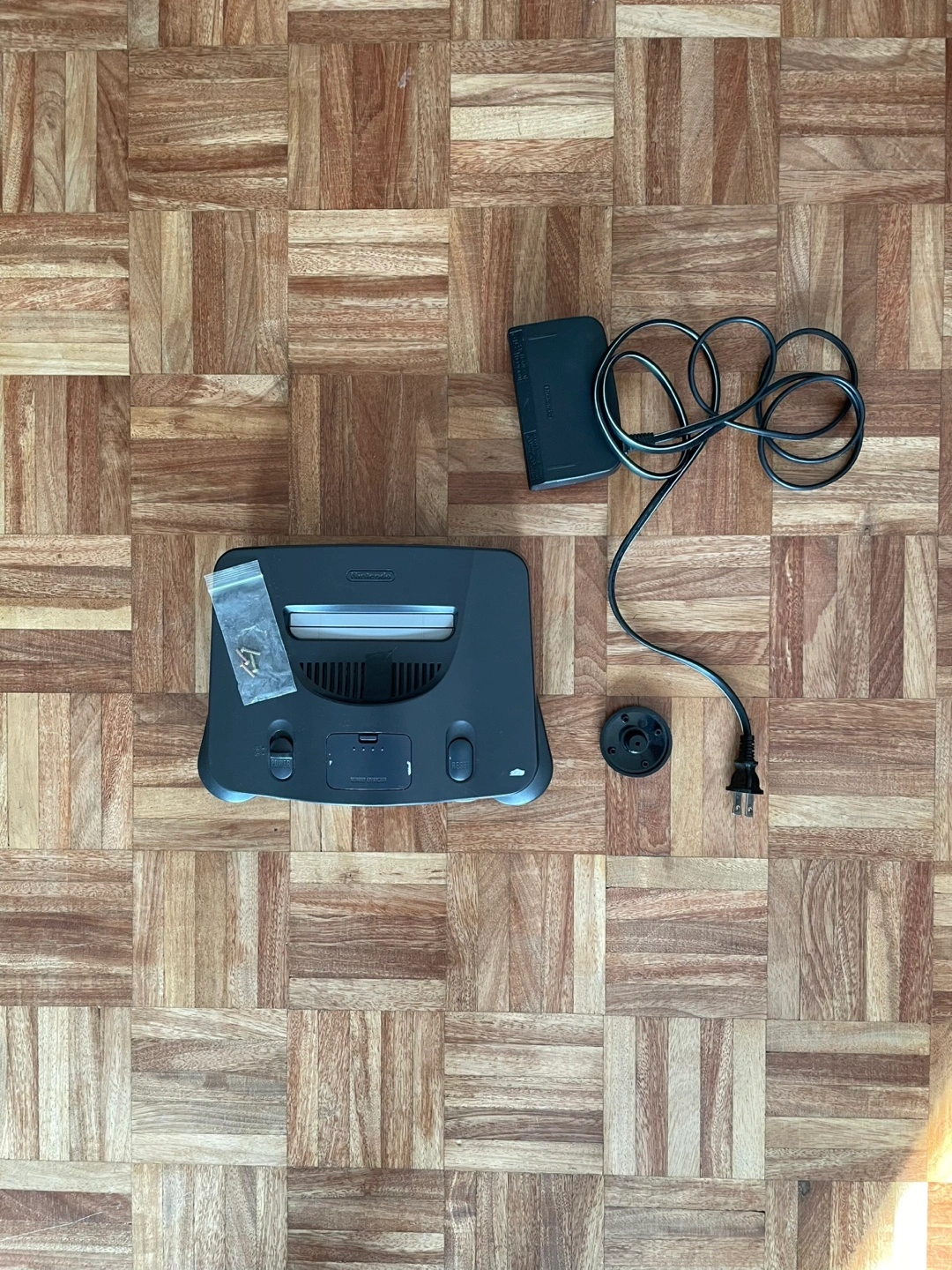 Selling a Nintendo 64 console. The screw-holes in the shell have been stripped and the shell is cracked in several places. It still draws power but I can’t get the AV to connect. It’s missing one of the front feet also. Includes a power block but no AV cord.