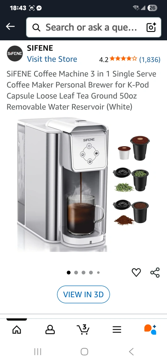 Selling a SIFENE Coffee Machine, a 3-in-1 single-serve personal coffee maker brewer. It's designed for K-Pod capsules, loose leaf tea, and ground coffee. It also features a removable 50oz water reservoir. Great for making a quick cup!