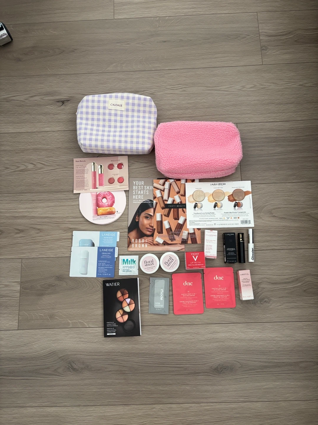 154The bundle includes: 2 floral street mini scented candles 7 make up samples (foundation, concealer, lip serum, mascara, glossier boy brow gel in the shade clear/transparent) 9 skincare samples (Lancôme Génifique serum, Laneige tinted lip serum etc) 2 new makeup bag (1 fluffy & 1 Caudalie) 2 hair care samples (DAE styling cream samples) Too far to pick up? FYI, I am also selling on Poshmark in case you are interested. https://posh.mk/UBMQOvcx1Xb If you purchase on Poshmark, it will be mailed to you by Canada post If you don’t have a Poshmark account, you could use my code “luckyglcc” when registering to get free shipping (you will be charged $12.49+tax shipping BUT they also give you a $15 credit for your first Poshmark purchase )