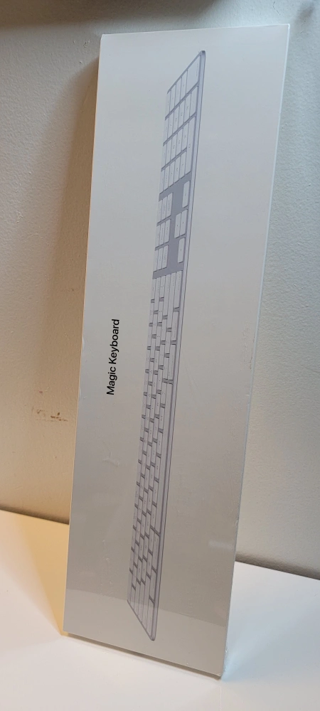 Selling a brand new, wireless Apple Magic Keyboard with Numeric Keypad in silver! It comes with the original box. This keyboard is sleek, lightweight and perfect for anyone who needs a full-size keyboard layout. It connects wirelessly to your Mac, iPad, or iPhone via Bluetooth, and the rechargeable battery lasts for about a month between charges