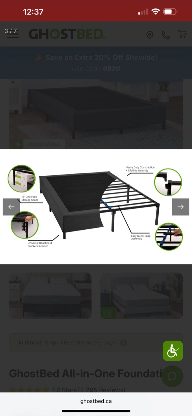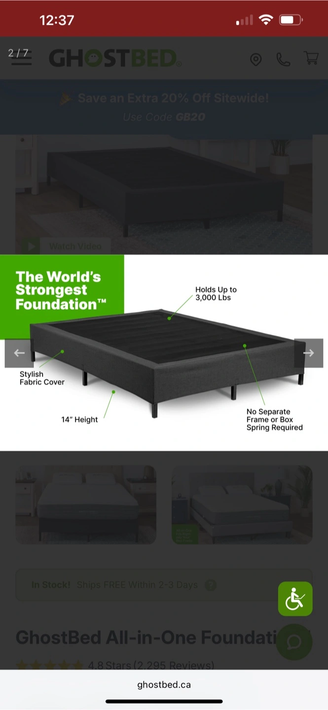 60GhostBed All-in-One Foundation™ Paid over $400, asking $150 OBO King size Sturdy, all-metal construction holds up to 3,000 lbs 14" total height, with a generous 12" under-bed clearance for storage Easy, quick-snap assembly—no tools required! Designed in the United States and Imported Replaces the need for a box spring or separate metal frame