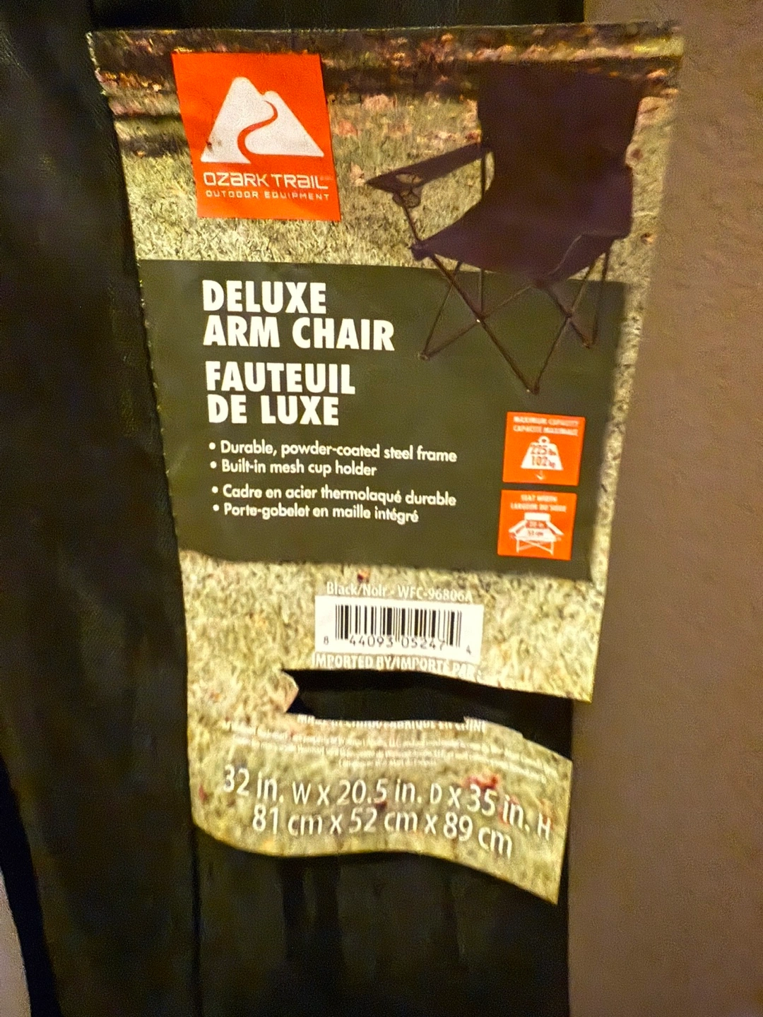 Selling a lightly used Ozark Trail Deluxe foldable camping/ outdoor Arm Chair! Durable, powder-coated steel frame and a built-in mesh cup holder. It includes the carrying bag for easy transport and storage. Perfect condition. Very light and comfortable at the same time. Barely used. Bundle with items from my other listings for a reduced price!!!