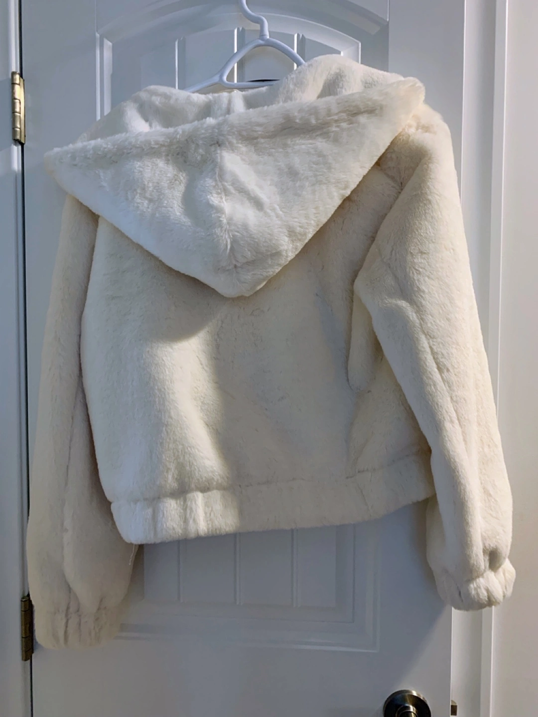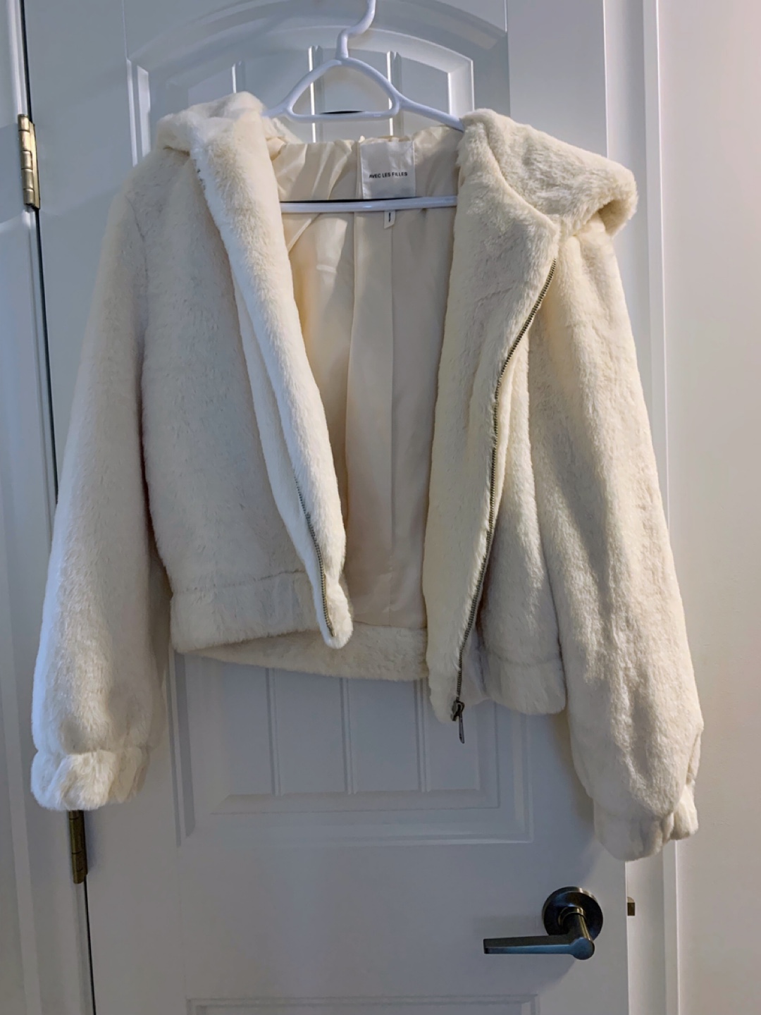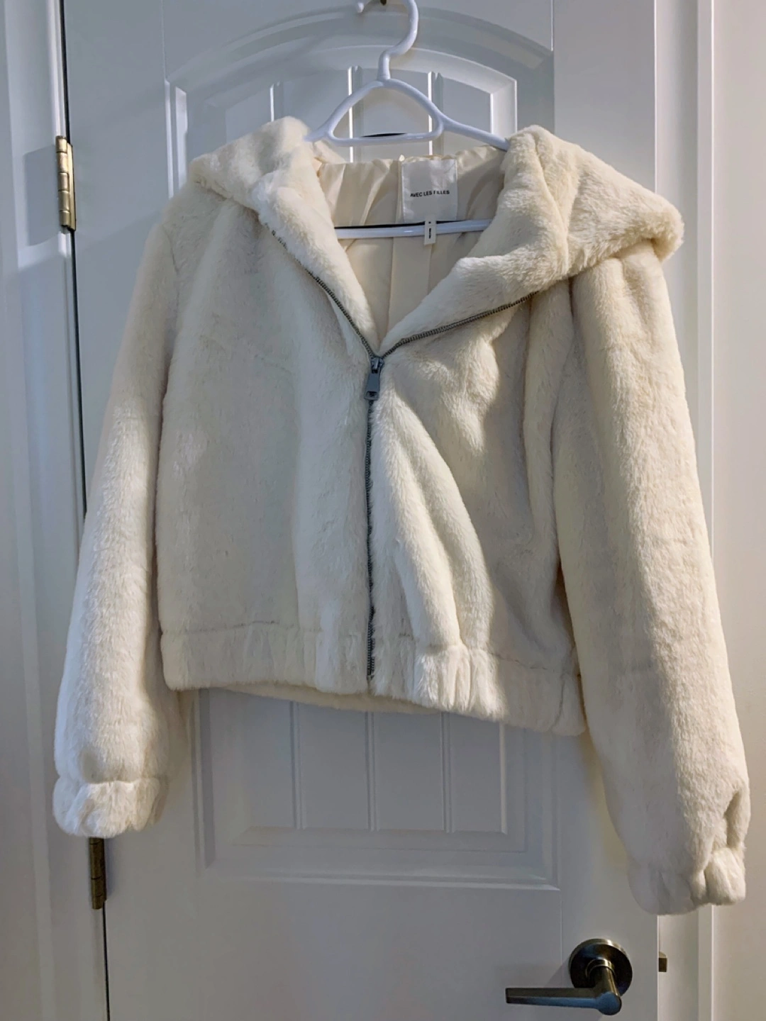 Selling a super cute and cozy Avec Les Filles hooded jacket! It's a size small and made of a soft, white faux fur material. Perfect for adding a touch of warmth and style to any outfit! New, never worn, no tags however.