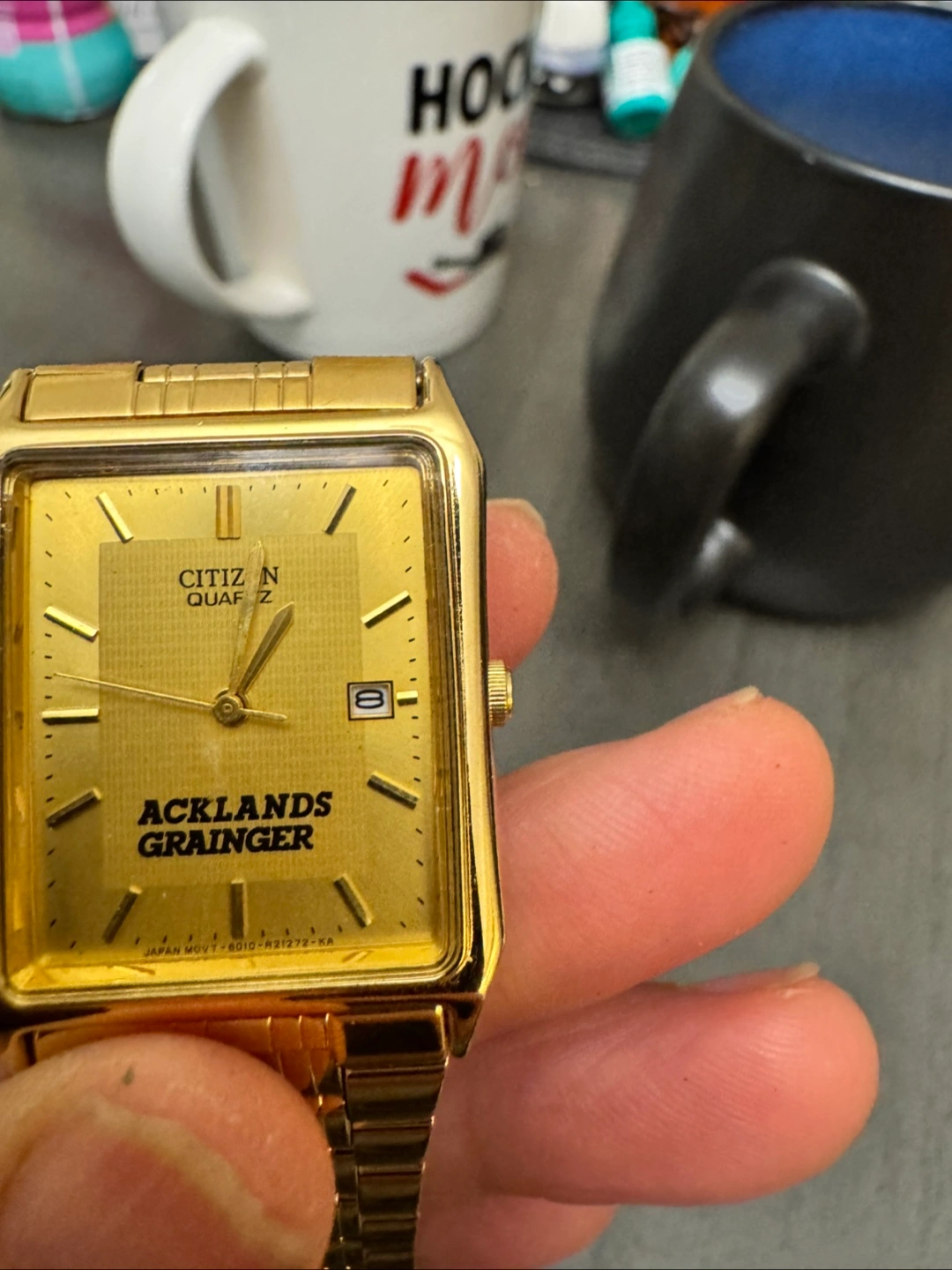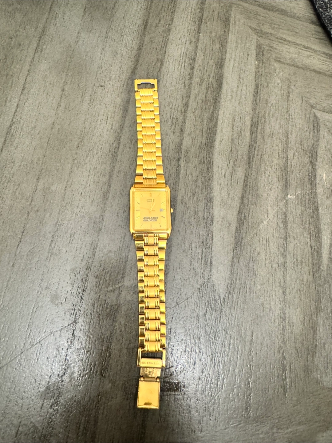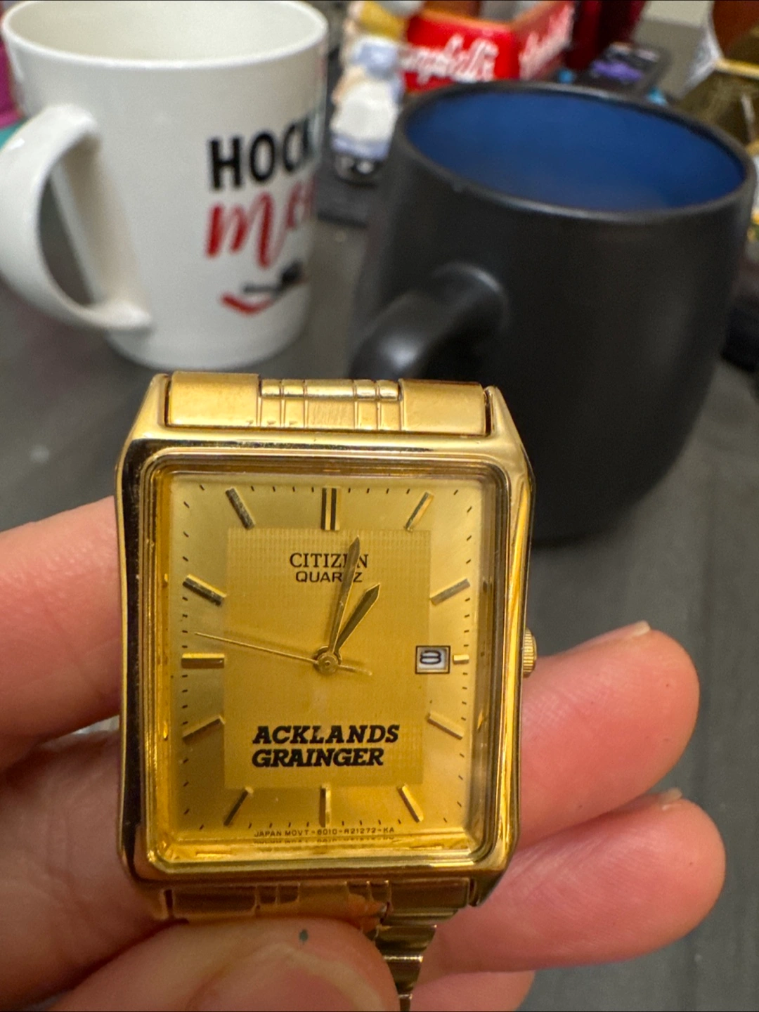 Selling a Citizen Quartz watch with an Acklands Grainger design. It's a gold-tone watch, perfect for adding a touch of elegance to your style! The watch features a date display.