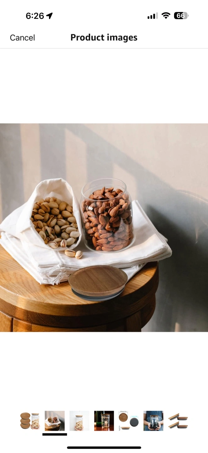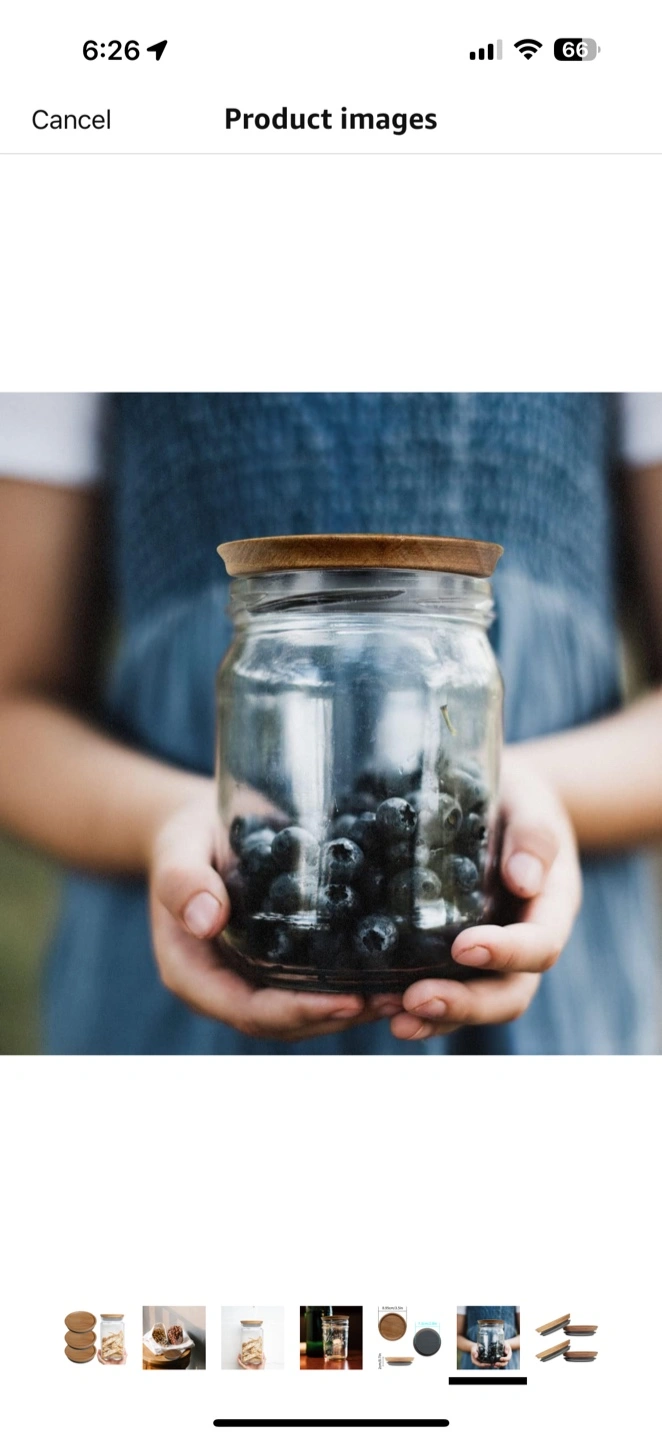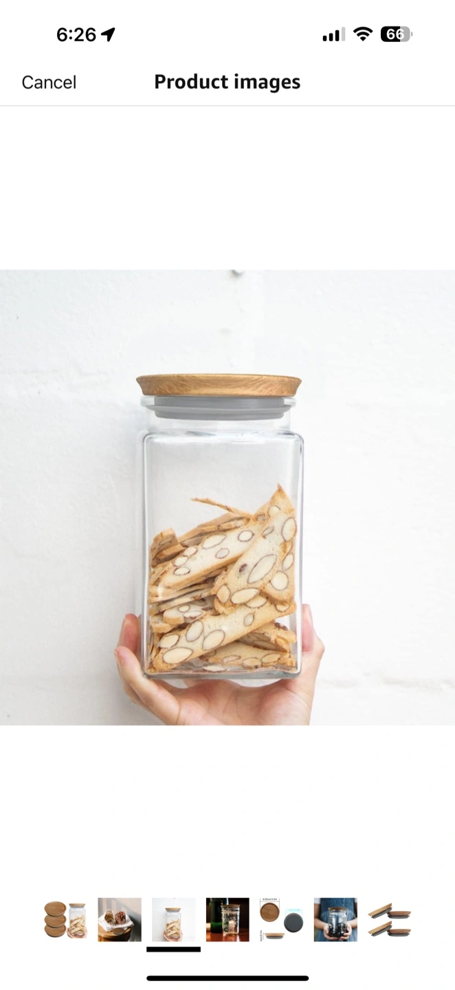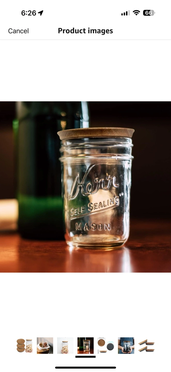 I'm selling a Homin self-sealing mason jar. The jar has a wooden lid. The lid is 8.95cm/3.5in in diameter and 2cm/0.7in tall. It's great for storing nuts, cookies, or anything else you want to keep fresh!