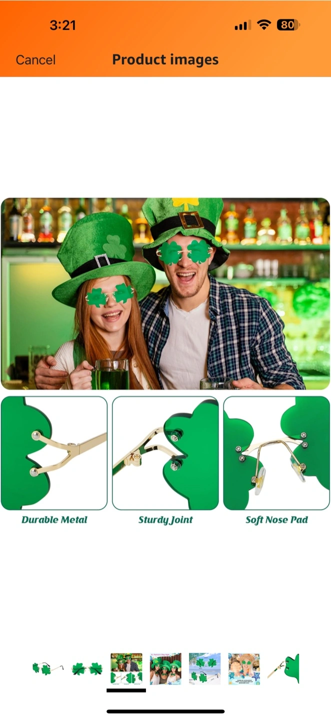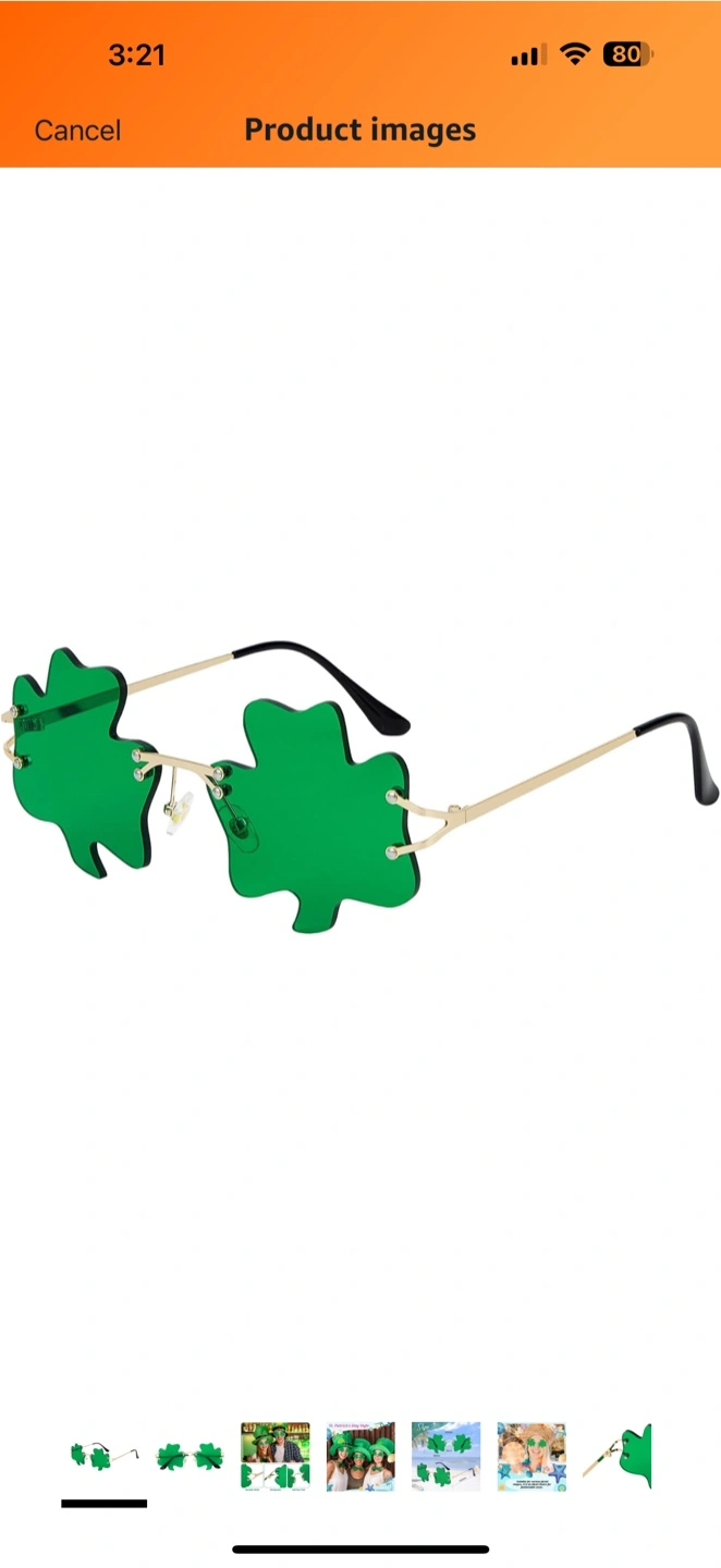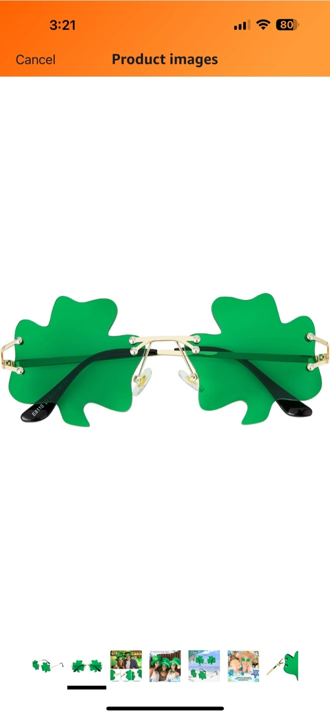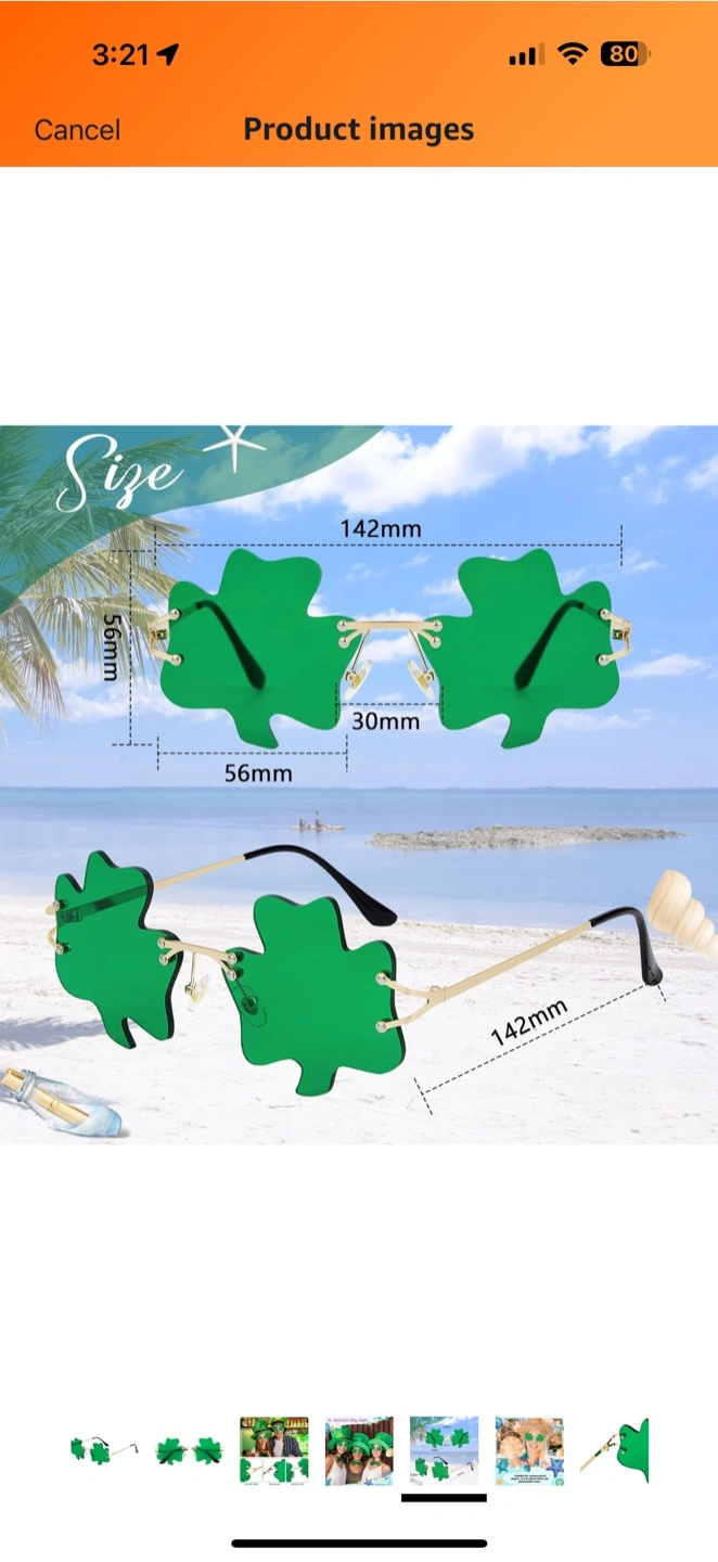 Get ready to celebrate St. Patrick's Day in style with these fun shamrock sunglasses! They feature a durable metal frame, sturdy joints, and soft nose pads for a comfortable fit. The lenses are shaped like green shamrocks, perfect for adding a festive touch to your outfit. The glasses are 142mm wide, with a lens height of 56mm.