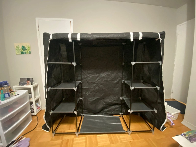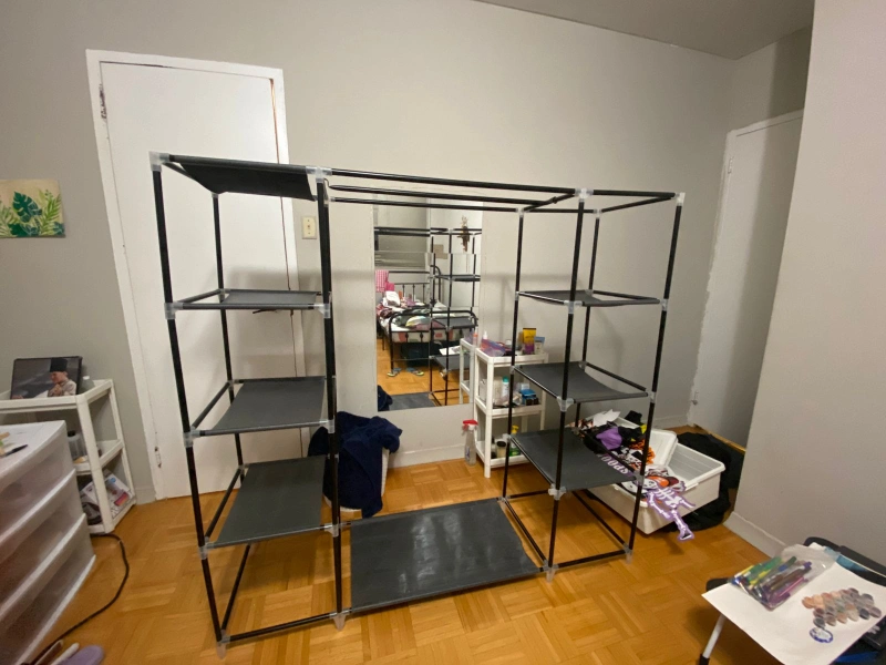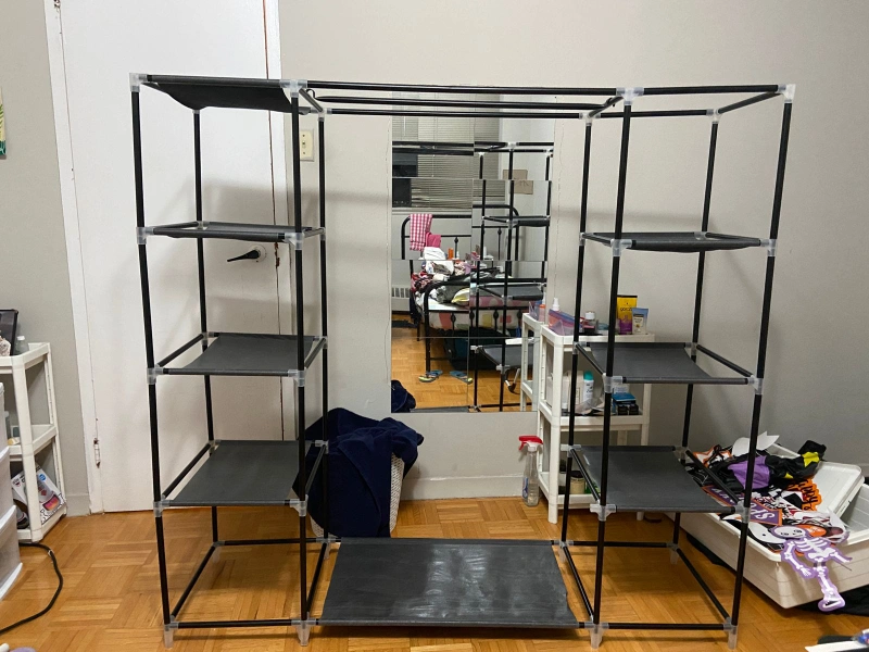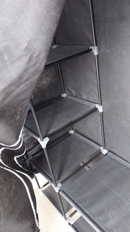 Selling a portable closet wardrobe in black. It's great for adding extra storage space! Perfect for organizing clothes, shoes, and accessories. Easy to assemble and disassemble, making it ideal for small spaces or temporary storage needs. I have disassemble it now so dnt have more pictures. Its not heavy and can be easily carried in public transport. condition is good and every piece is stored carefully so nothing is missing.
