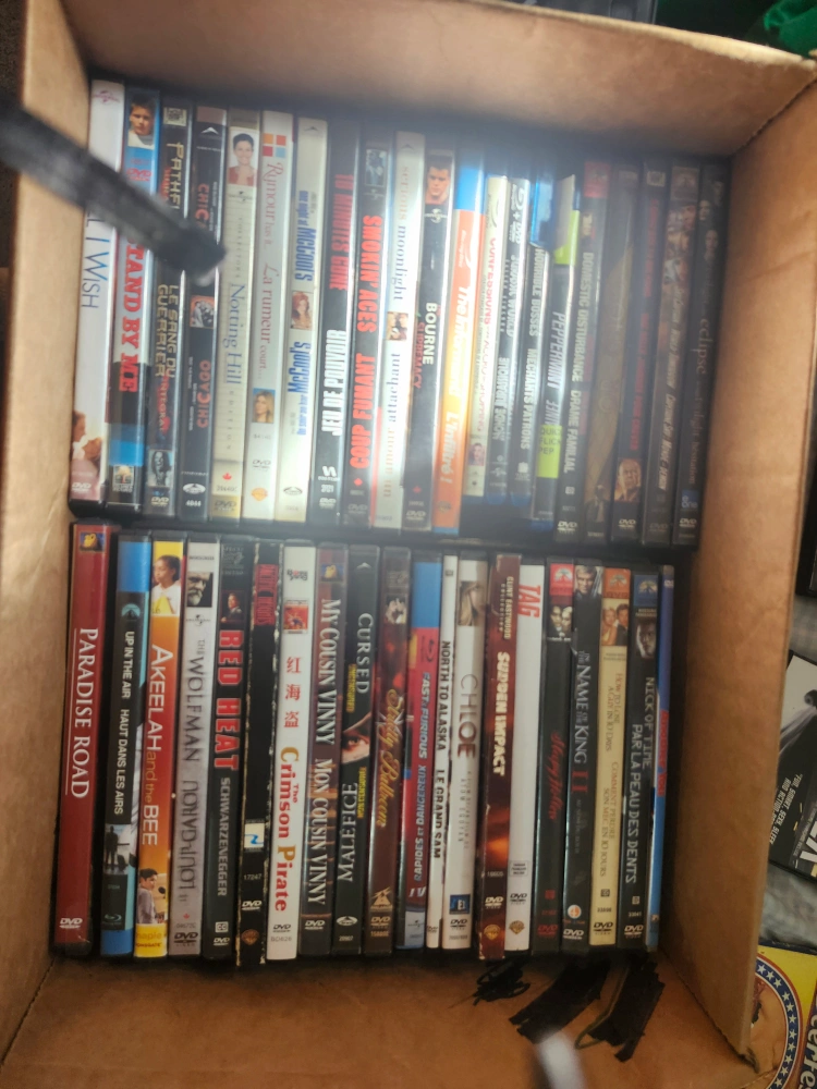 Selling a box of DVDs with various titles! There's a good mix of movies and TV shows. Titles include: and there are 55 dvds