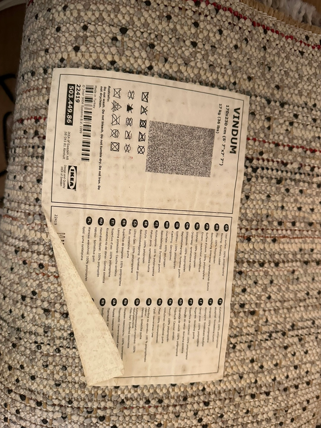 Selling an IKEA Vindum rug! It's in great condition and measures 170x230 cm (5'7" x 7'7")