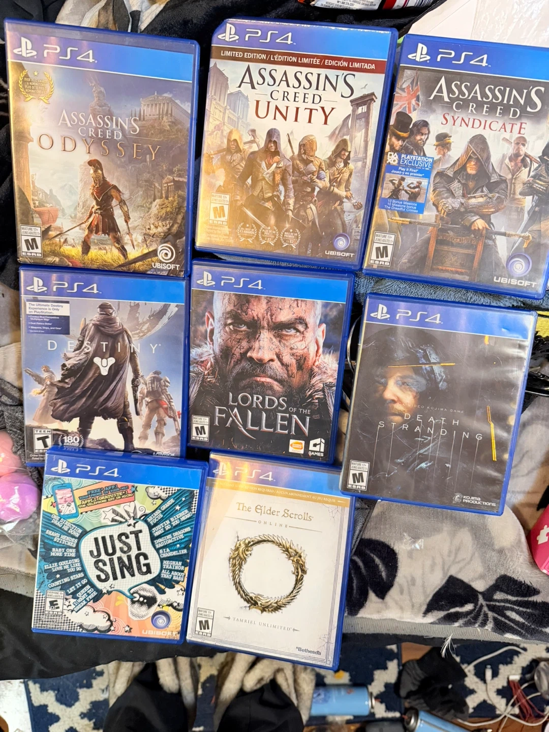 Large collection of PlayStation 4 games. Includes various genres and titles. Many popular choices. Great deal for gamers!