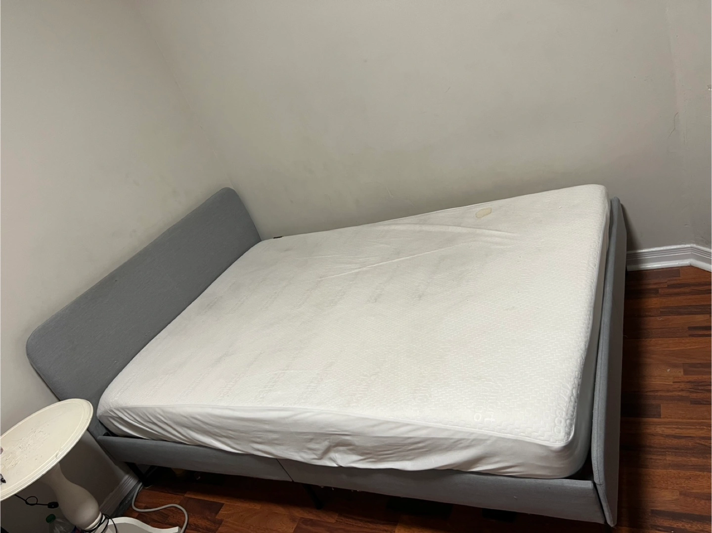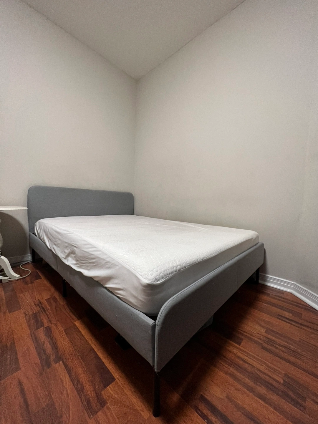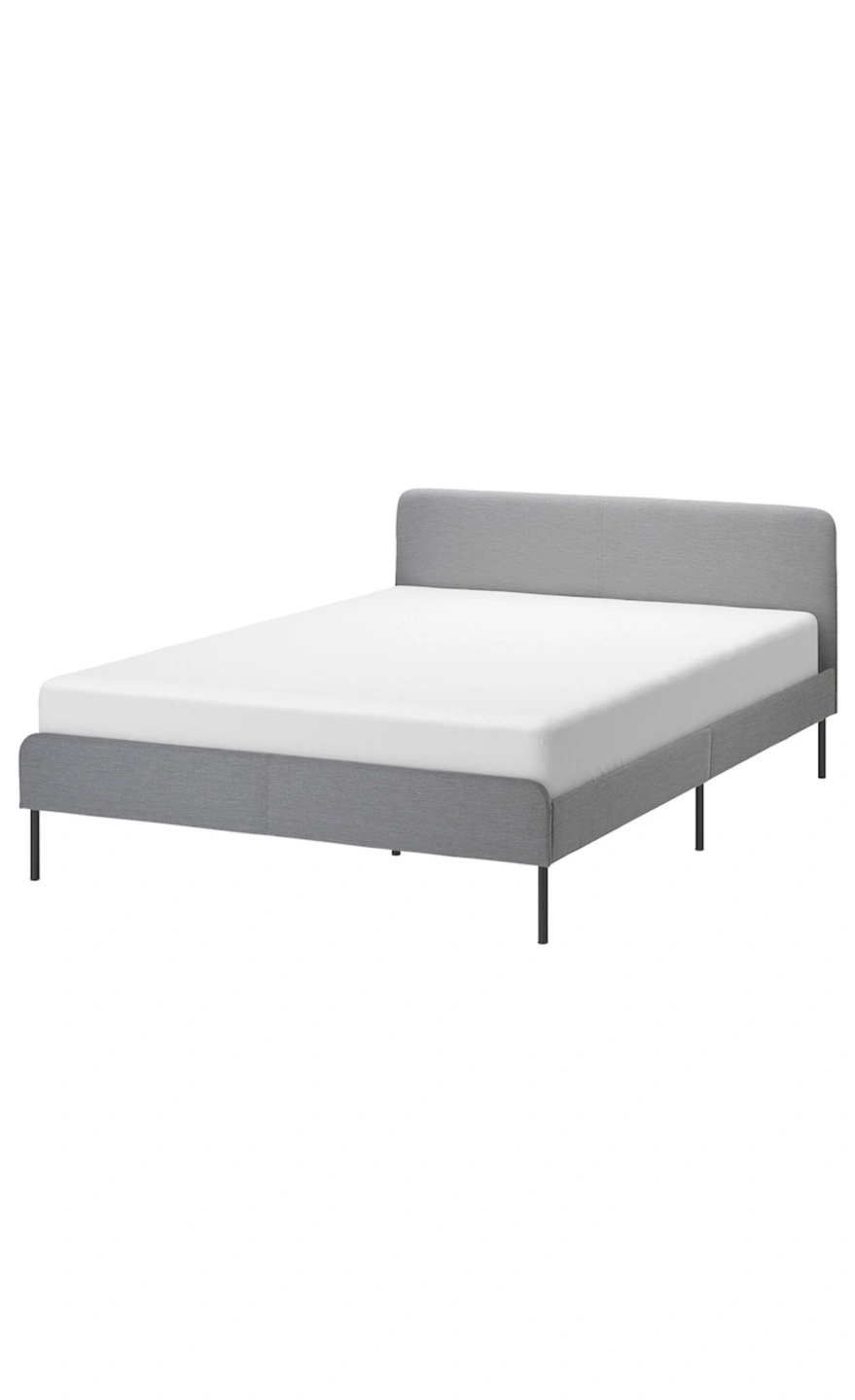 Selling a used IKEA SLATTUM upholstered bed frame in Knisa light gray, size full/double. It's in good condition and ready for a new home! Originally bought for $259. Selling for $70