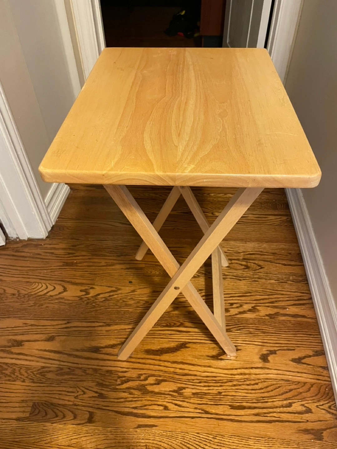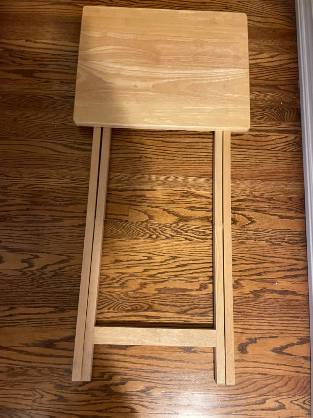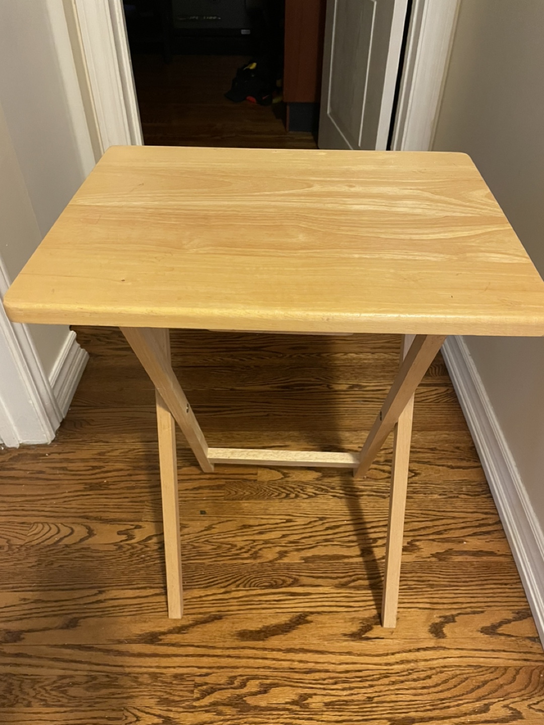 Selling a handy wooden folding tray table. It's perfect for snacks, crafts, or as a small side table. Easy to fold up and store when not in use!