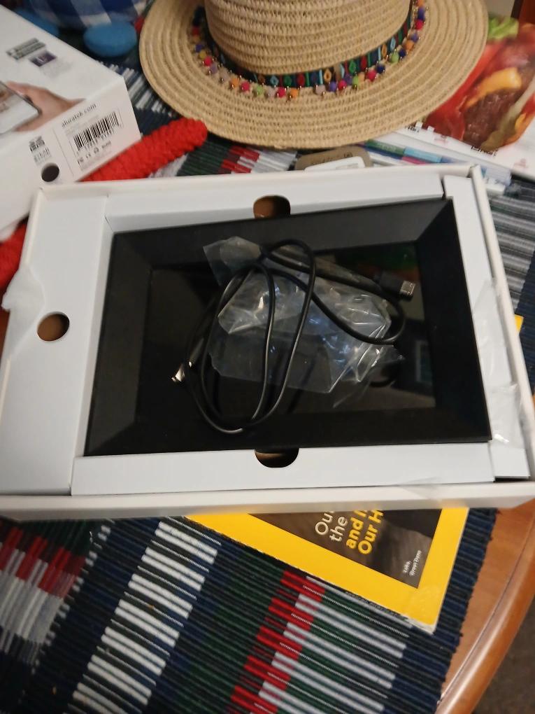 Selling an Aluratek 8-inch WiFi touchscreen digital photo frame. It comes with 16GB of memory. It also has auto rotation so photos will rotate to the frame's portrait or landscape orientation. The box is included!