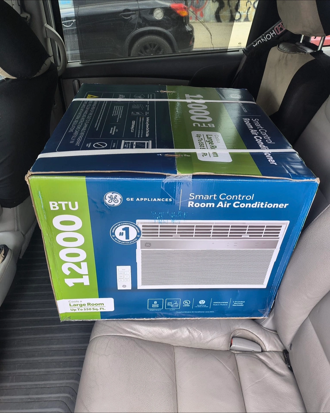 I'm selling a brand new GE 12000 BTU Smart Control Room Air Conditioner! It's perfect for a large room up to 550 sq ft.