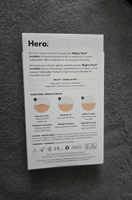 I'm selling a box of Hero Mighty Patch Invisible+ blemish patches! These are the hydrocolloid patches for daytime, designed to gently absorb pimple gunk in 6-8 hours. Each box contains 24 patches, perfect for keeping your skin clear and healthy!