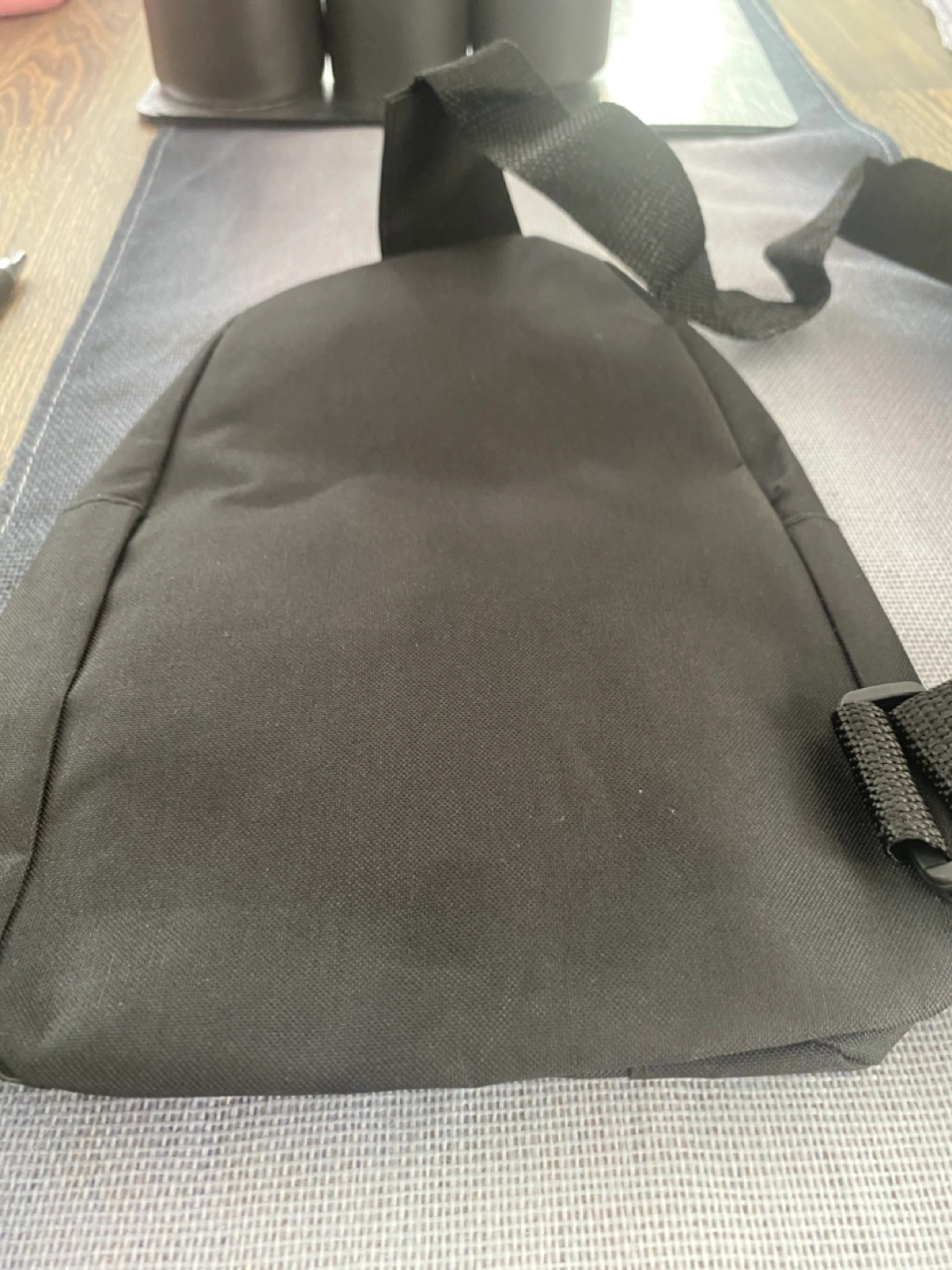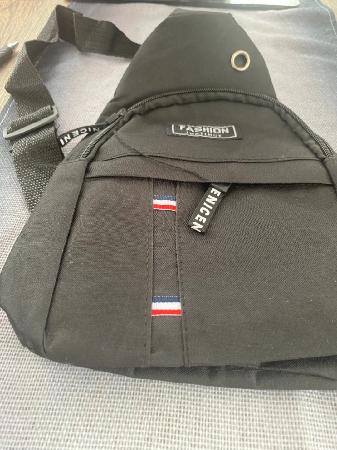 This is a black sling bag from Fashion Instinct. It's in great condition and perfect for carrying your essentials while keeping your hands free! It features a comfortable strap and a stylish design.