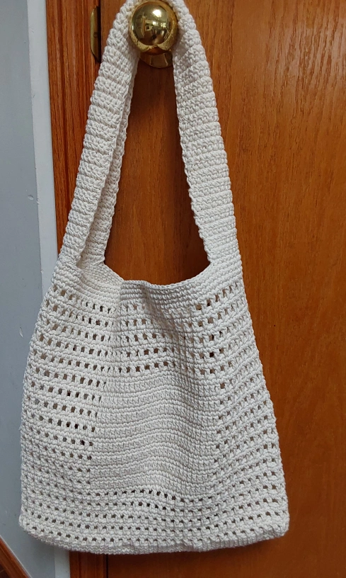 Selling a lovely handmade crocheted shoulder bag. It's a cream colour and perfect for carrying your essentials. The bag is in great condition and ready for a new home! Great for everyday use or a trip to the market. used high quality of yawns( 100% cotton)