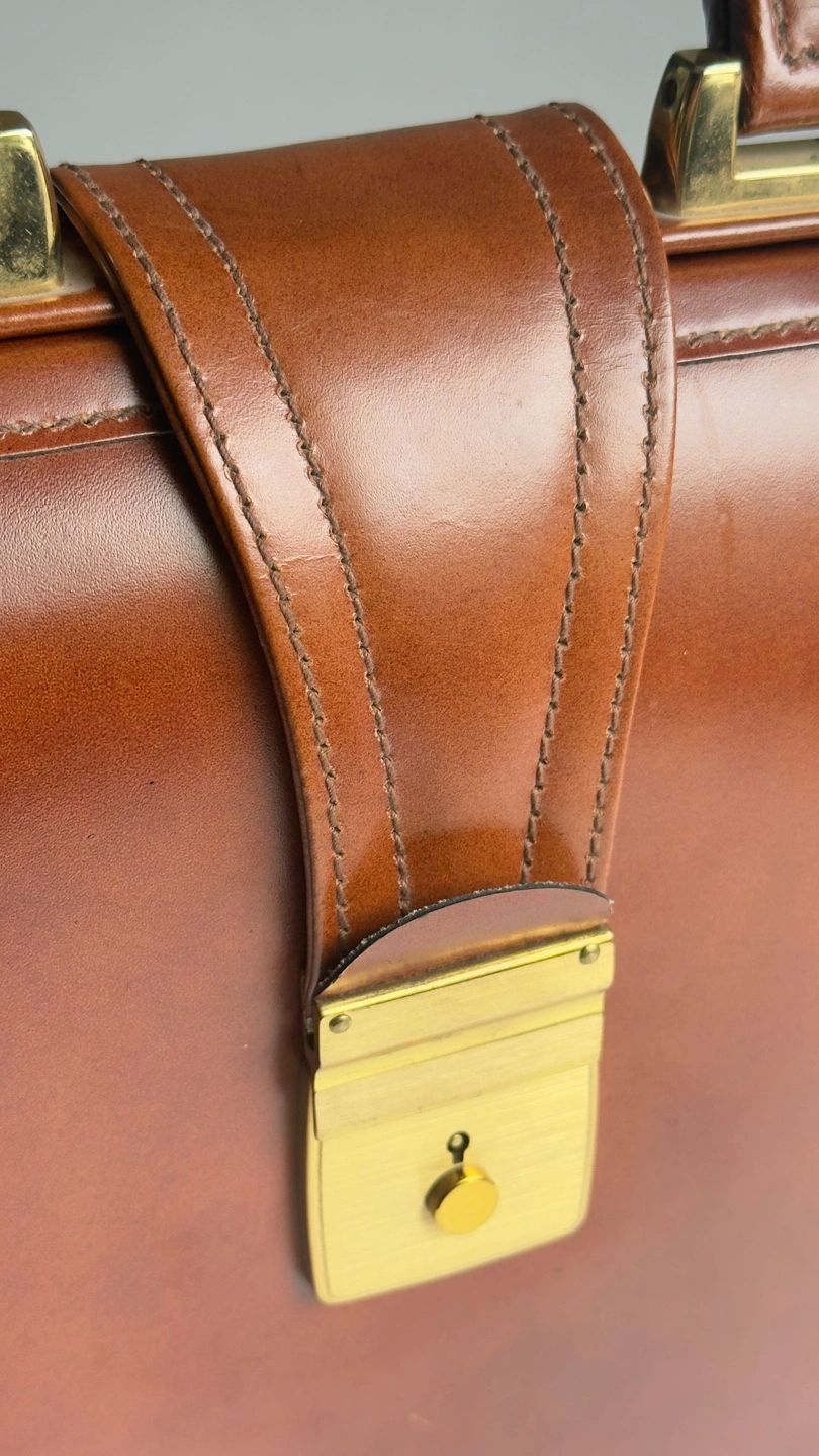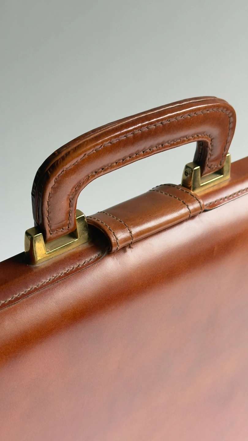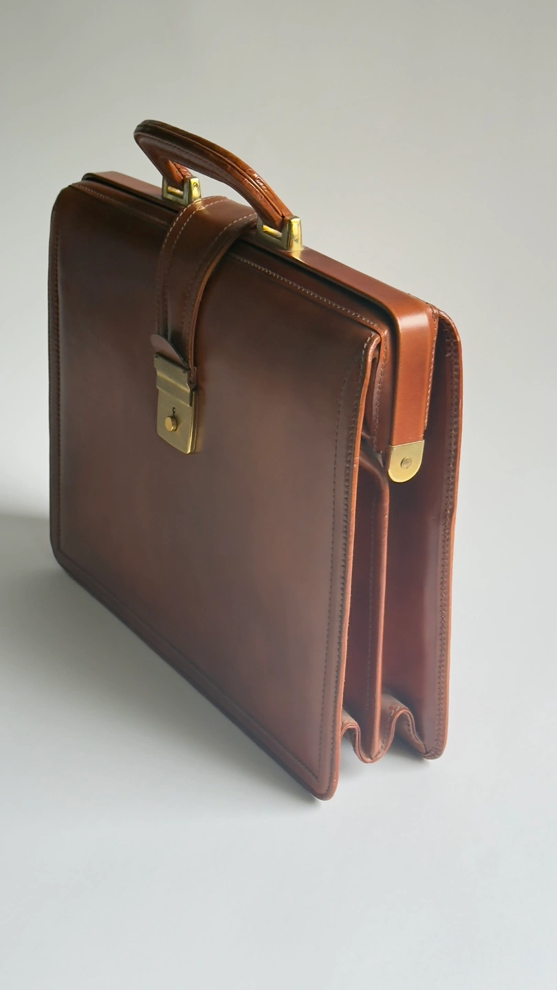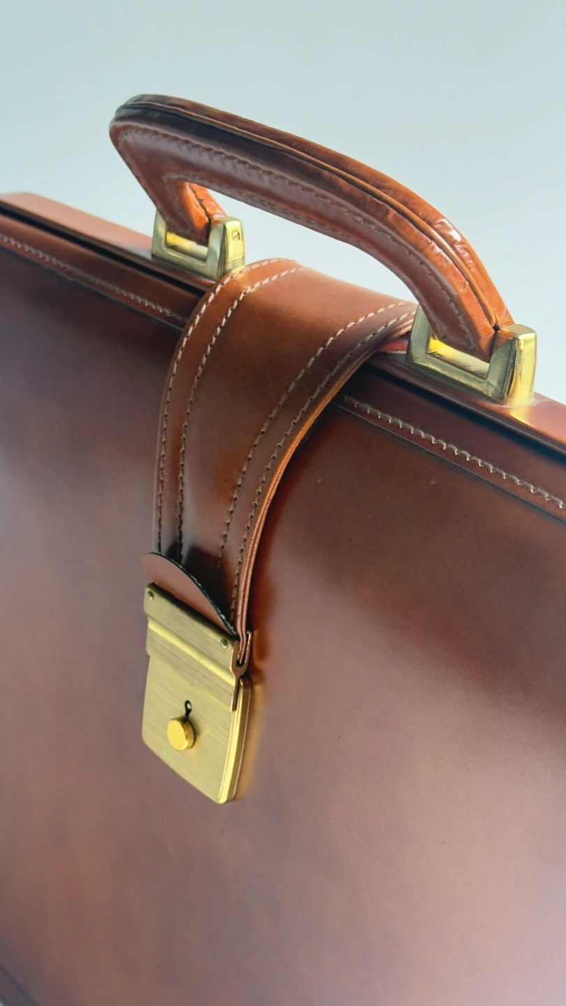 Classic brown leather briefcase in good condition! It's perfect for carrying documents and essentials. The briefcase features a secure latch closure and a sturdy handle for comfortable carrying.