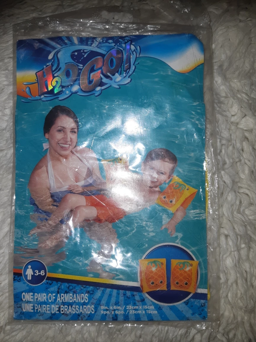 H2O Go! Armbands, perfect for kids aged 3-6 learning to swim! These armbands are brand new in their original packaging. The size is 9in x 6in (23cm x 15cm). Keep your little ones safe and having fun in the water!