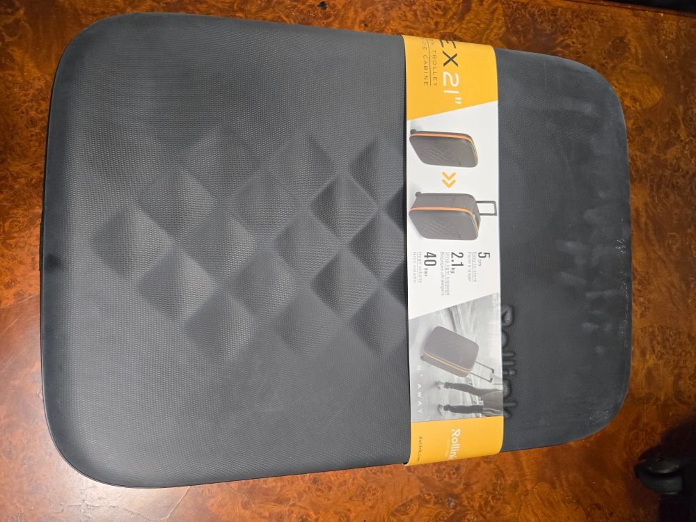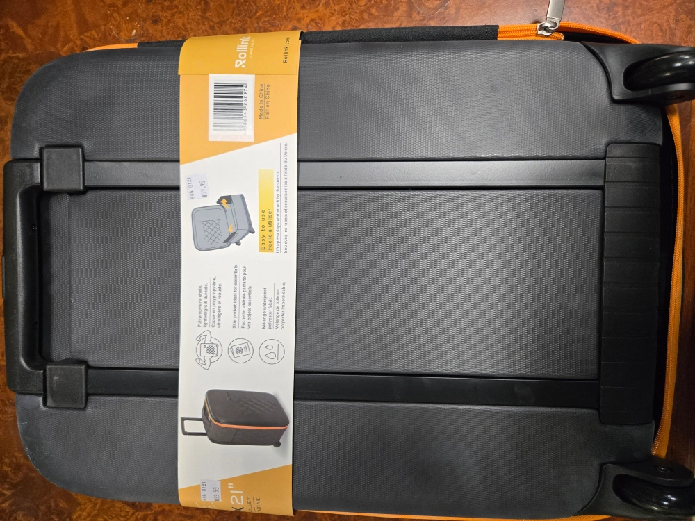 Selling a Rollink Flex 21" carry-on travel trolley suitcase! It's a lightweight and durable suitcase, perfect for your next trip. It's easy to store, and has a side pocket ideal for essentials. The shell is made of polypropylene and the fabric is waterproof polyester. It also has a huge volume of 40 liters. Originally bought for $99.95