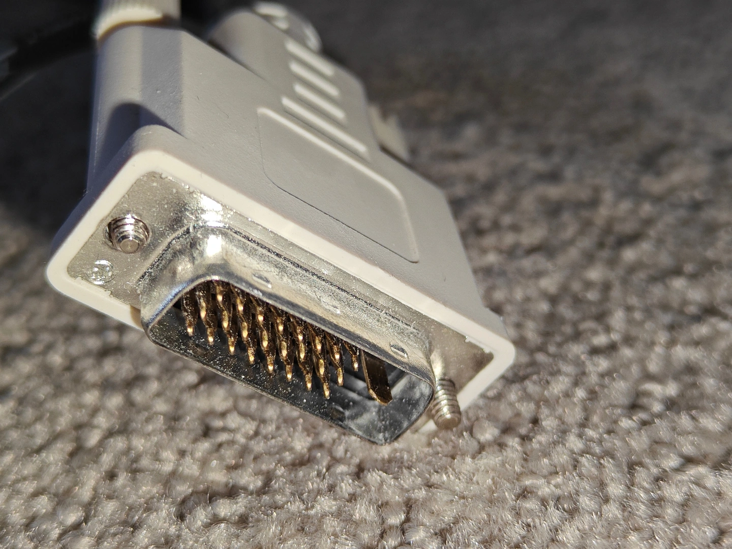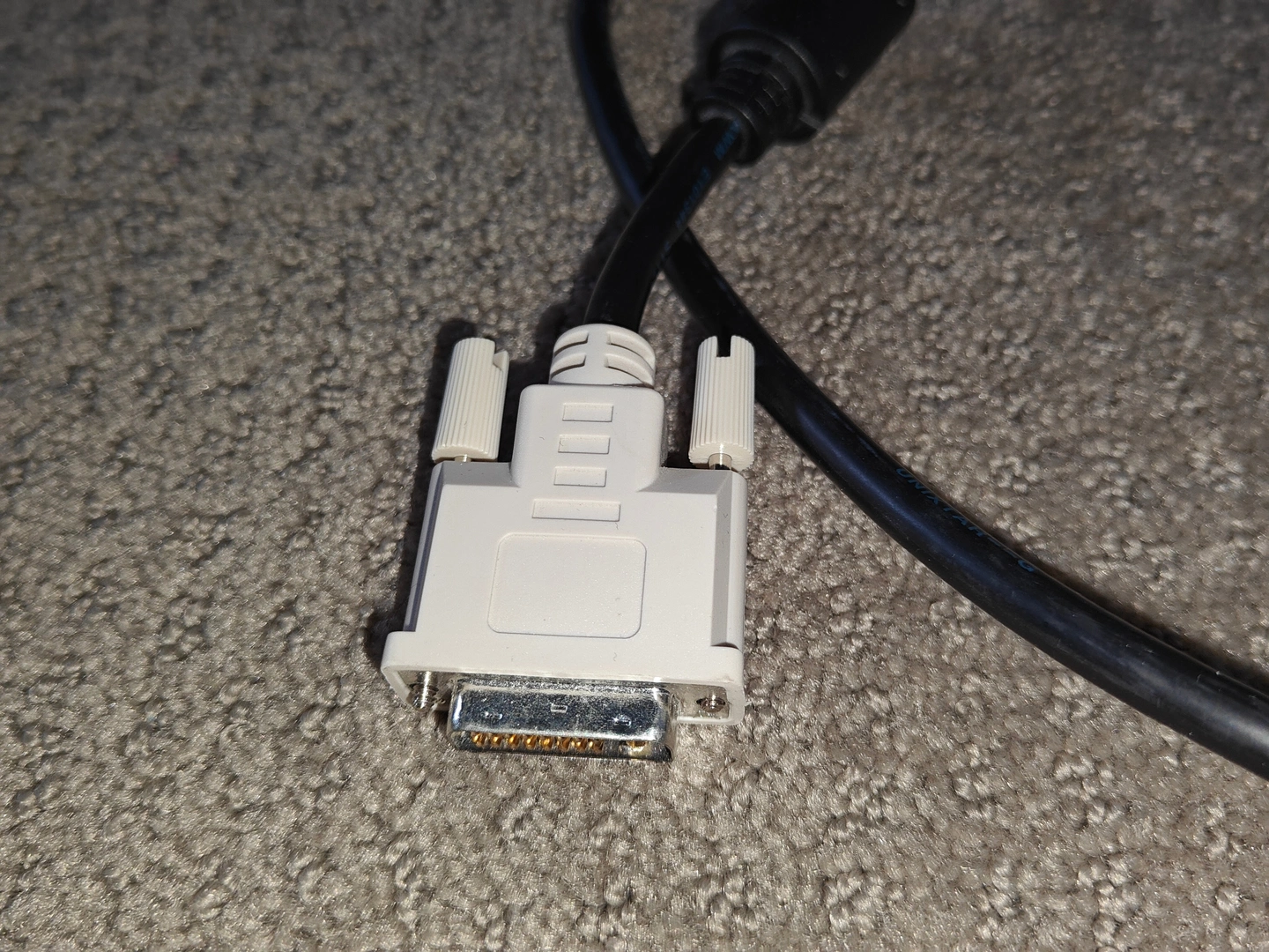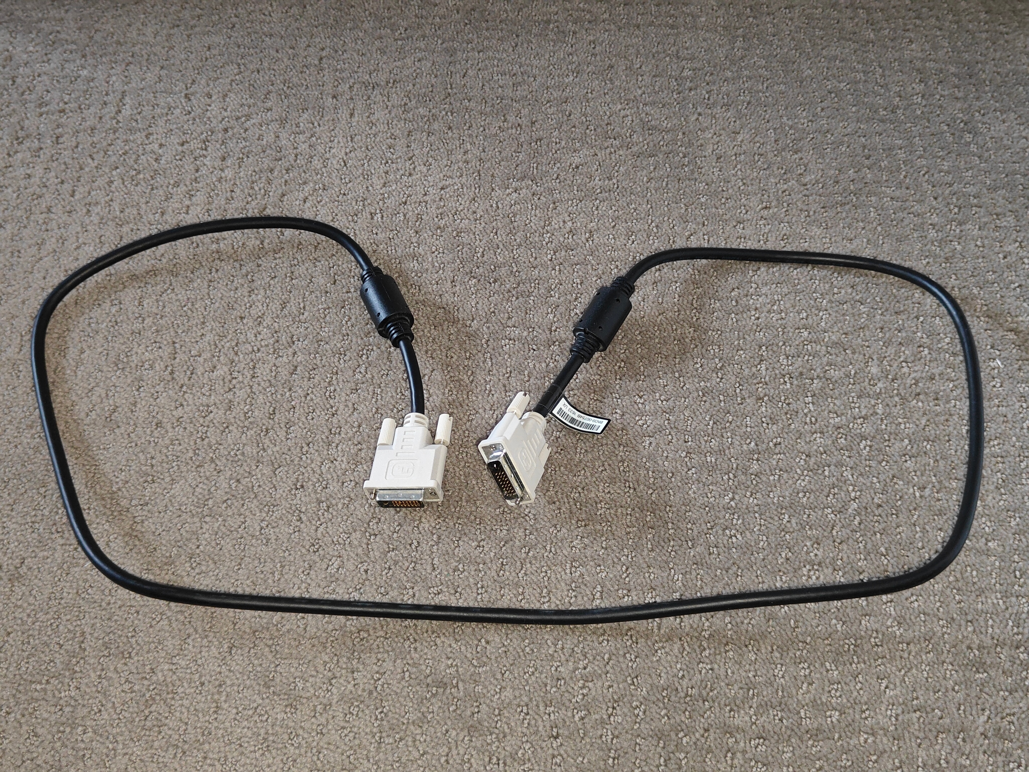 I am selling a DVI to DVI Cable - DVI-D to DVI-D (24+1) Dual Link Male-to-Male Computer Monitor Cable in used, tested, and working condition. DVI cable connects a DVI (Digital Video Interface) equipped computer to an HD monitor or projector with DVI-D Dual Link for video editing, gaming, or video projection.