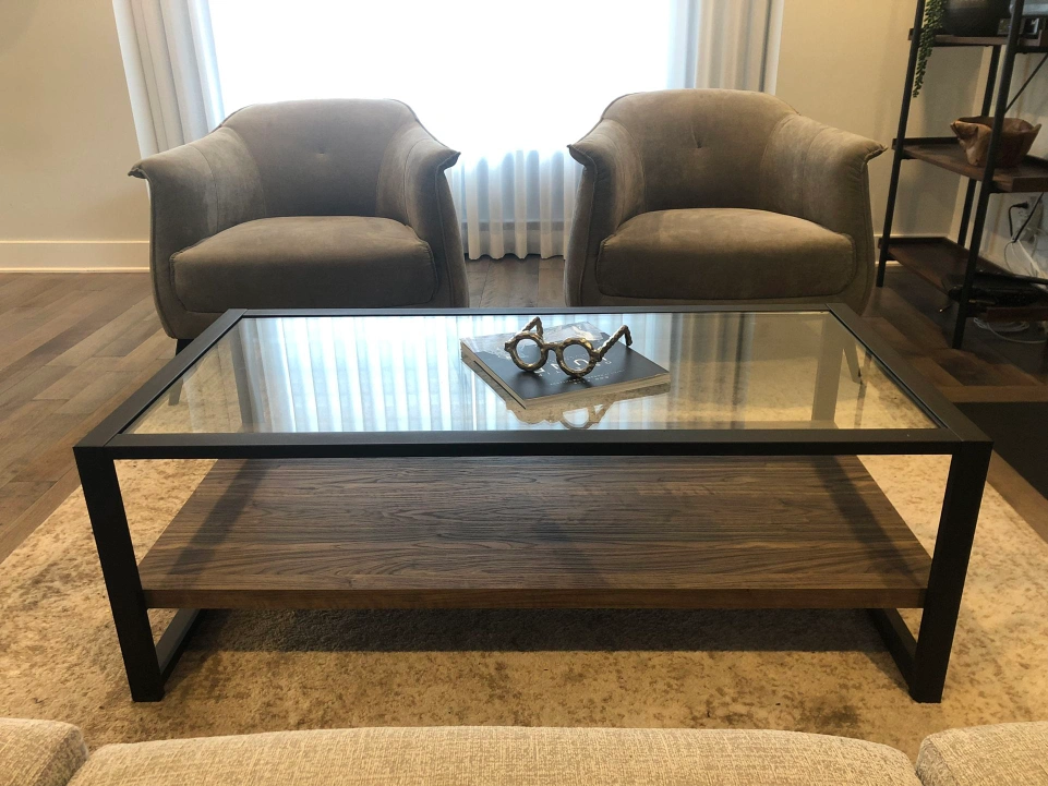 Glass Top Coffee Table with Wood Shelf