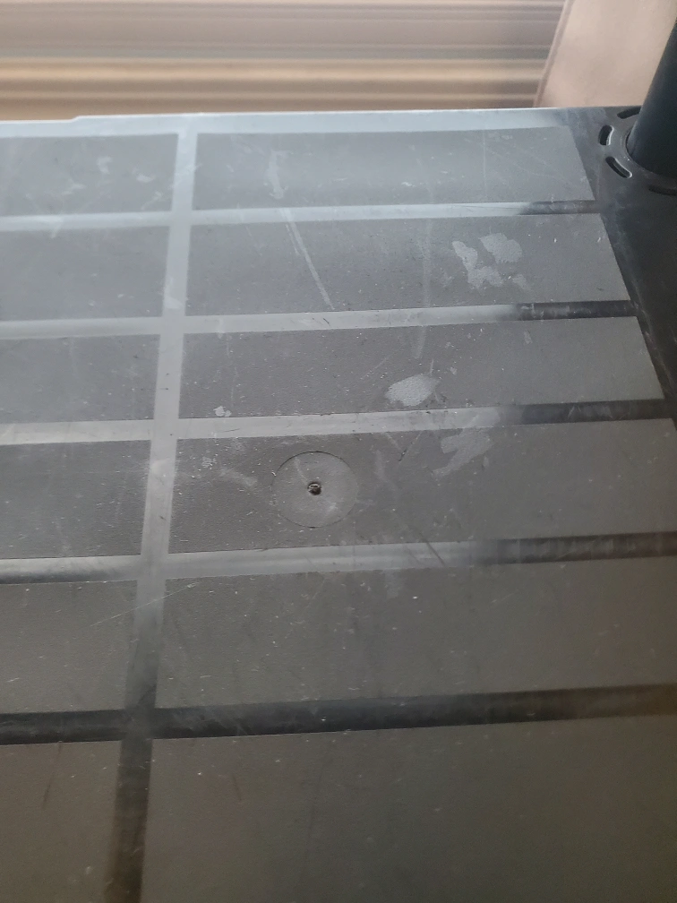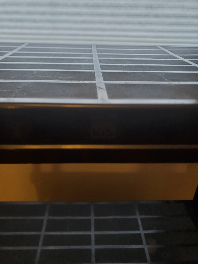 Selling a black plastic shelf unit. It has four tiers and is in used condition with some scratches and marks on the shelves as shown in the photos. Perfect for extra storage!