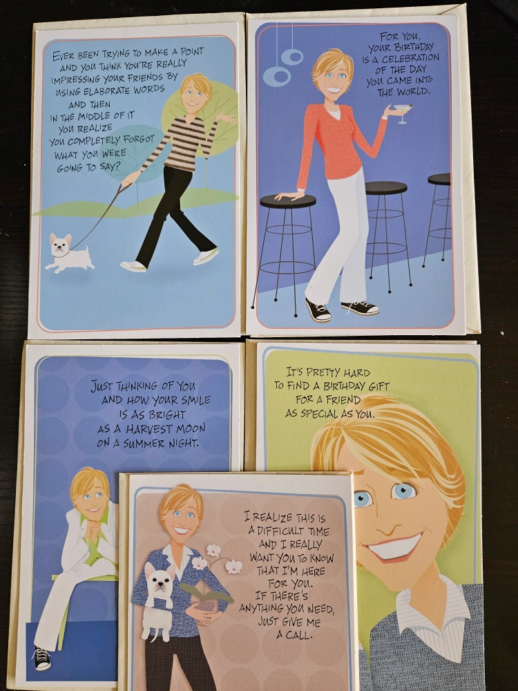 Ellen DeGeneres Greeting Cards - Set of 5. Mint condition