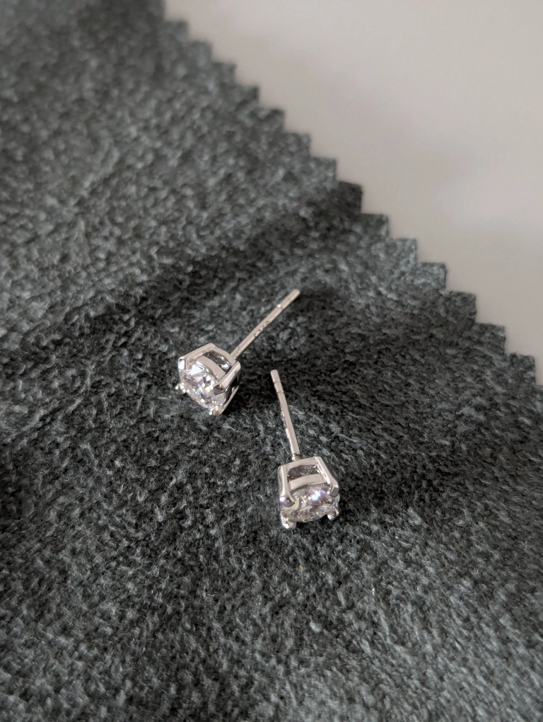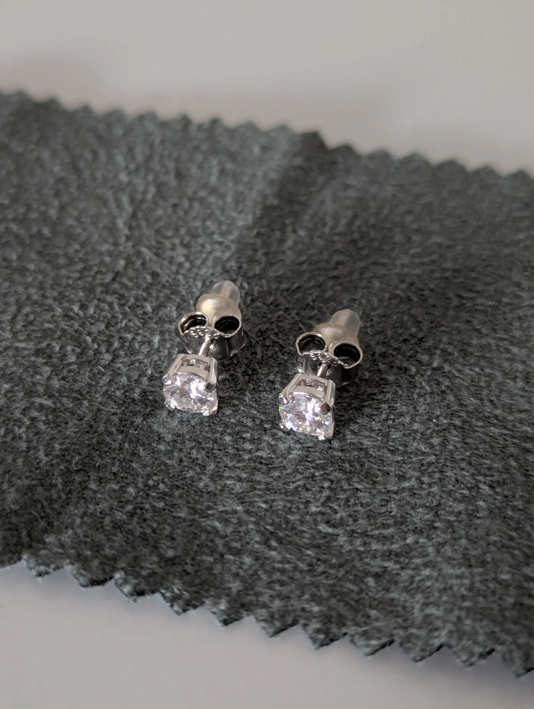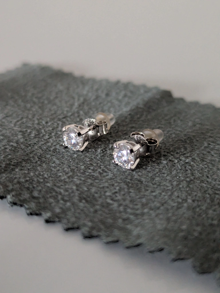 Elegant Moissanite stud earrings with 0.5 CT stones set in 925 silver and plated with 14K white gold. Gently Worn and in excellent condition. Sparkling, durable, and perfect for both everyday wear and special occasions.