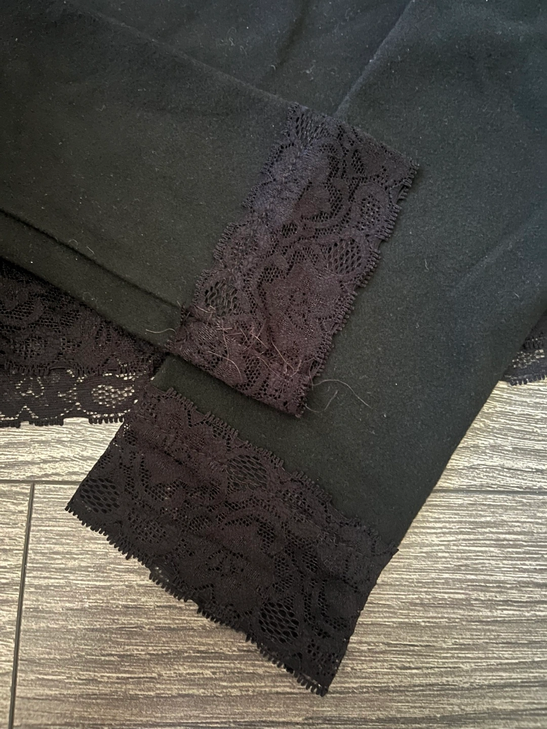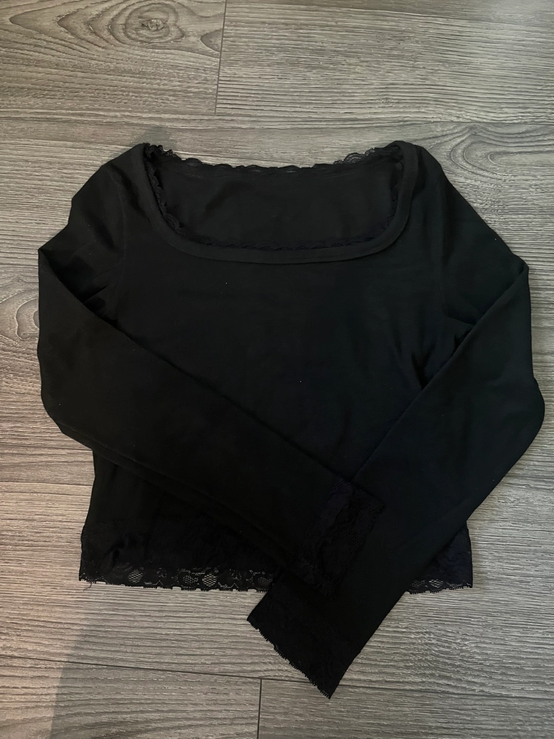 Cute black long sleeve top with lace trim detailing! Size Small. Only flaw is seen on the last picture (can be fixed with some sewing)