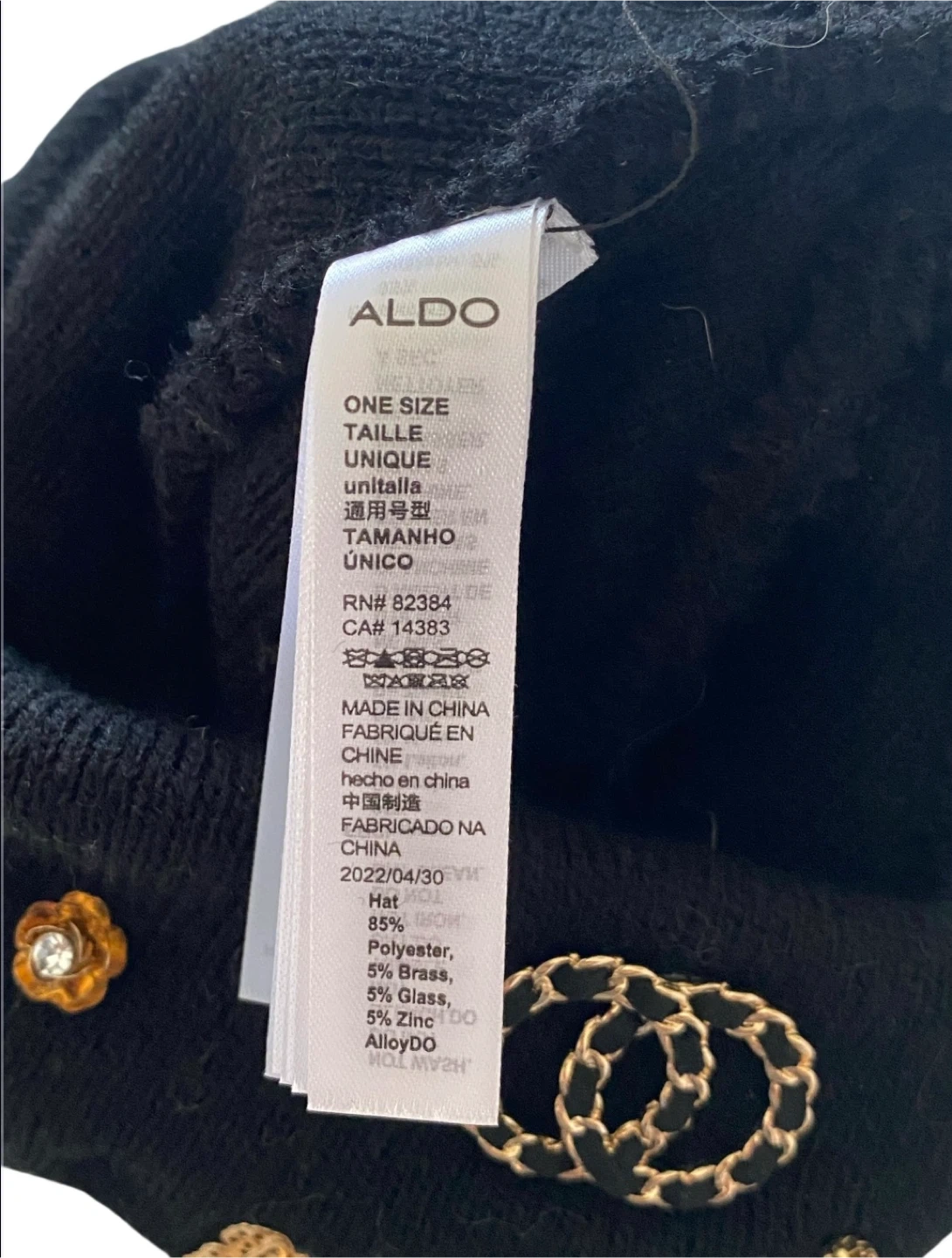 ALDO Black Beanie with Rhinestone and Charm Embellishments
