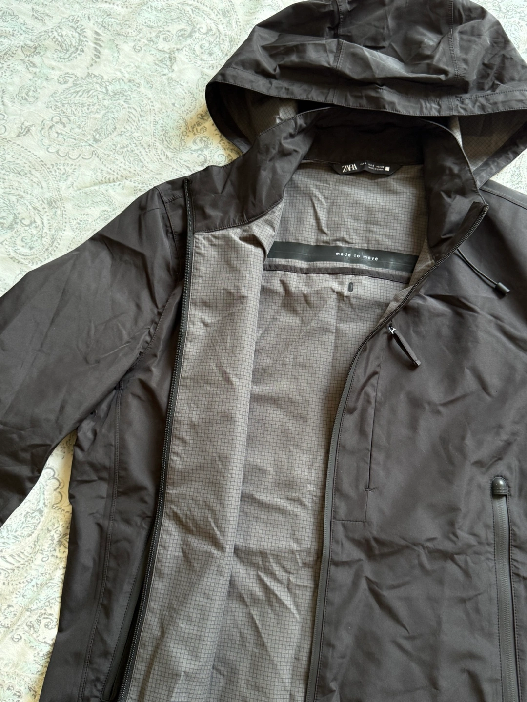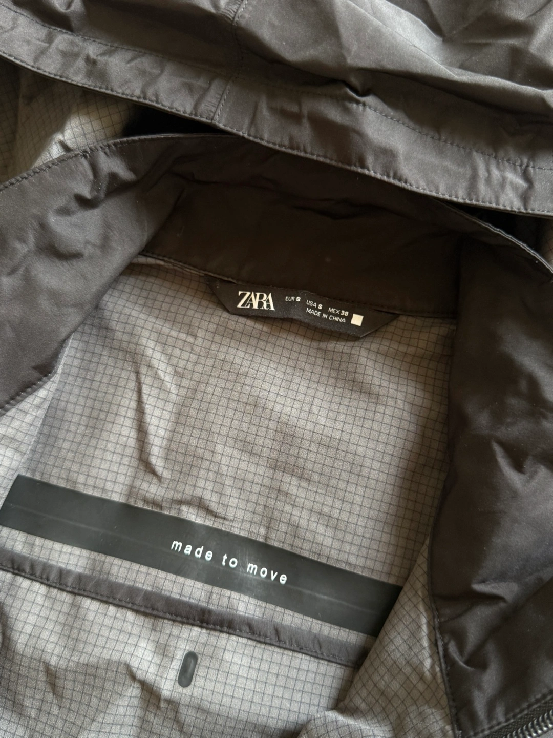 Selling a Zara "Made to Move" jacket in black. It's a size small and Perfect for those days when you need a light jacket with a hood