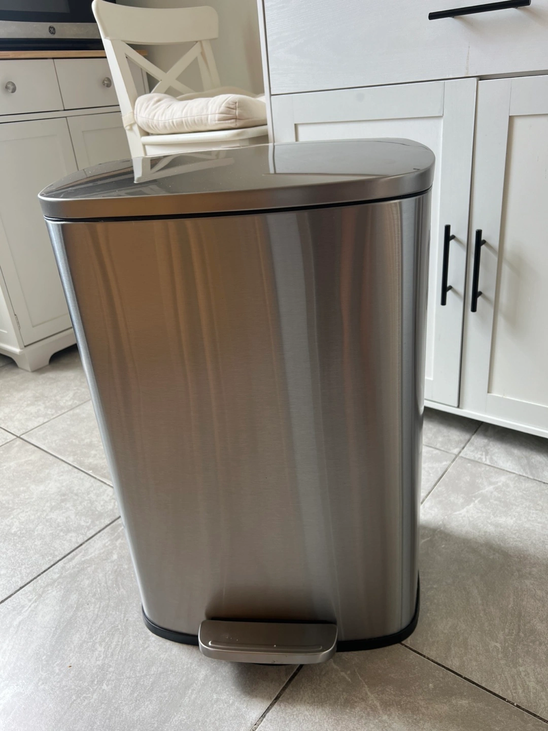 Selling a QUALIAZERO stainless steel trash can. It's a 50L/13 gallon size, perfect for kitchen use. The lid has a soft close and is fingerprint resistant. Originally bought for $64.98!