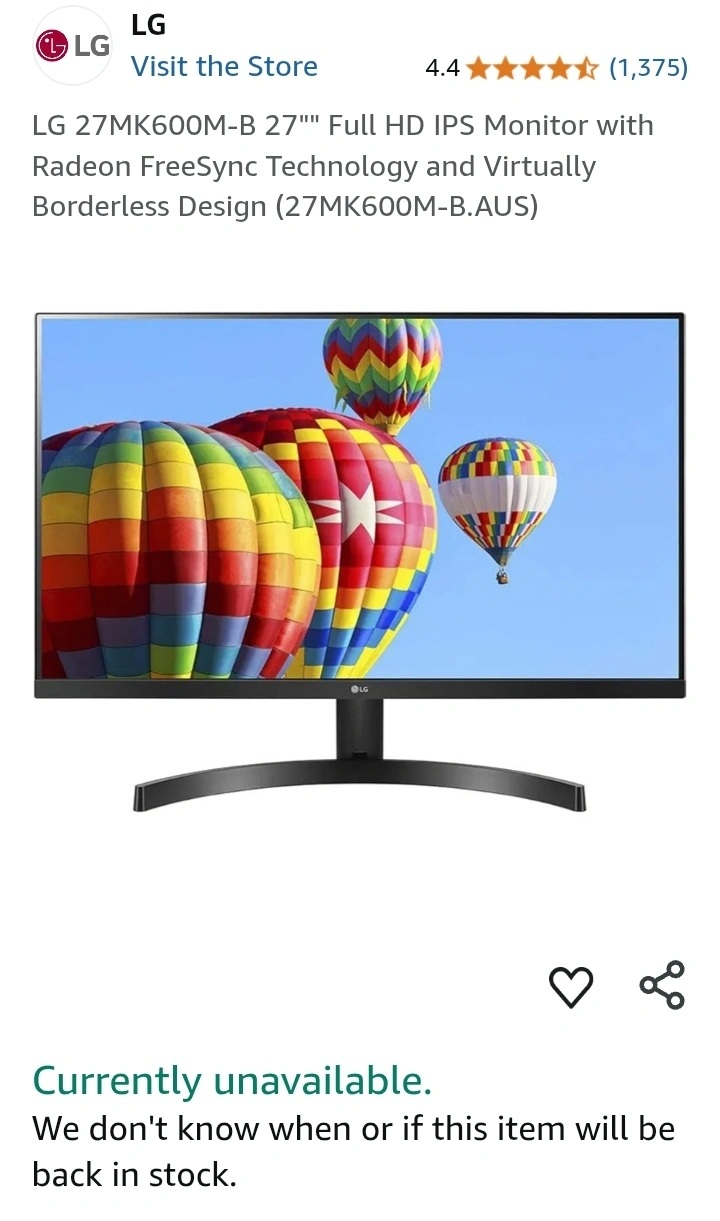 Selling an LG 27MK600M-B 27" Full HD IPS Monitor. It features Radeon FreeSync Technology and a virtually borderless design.