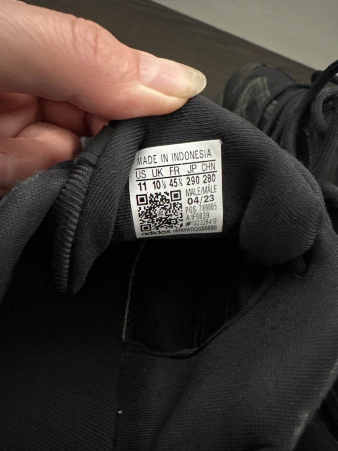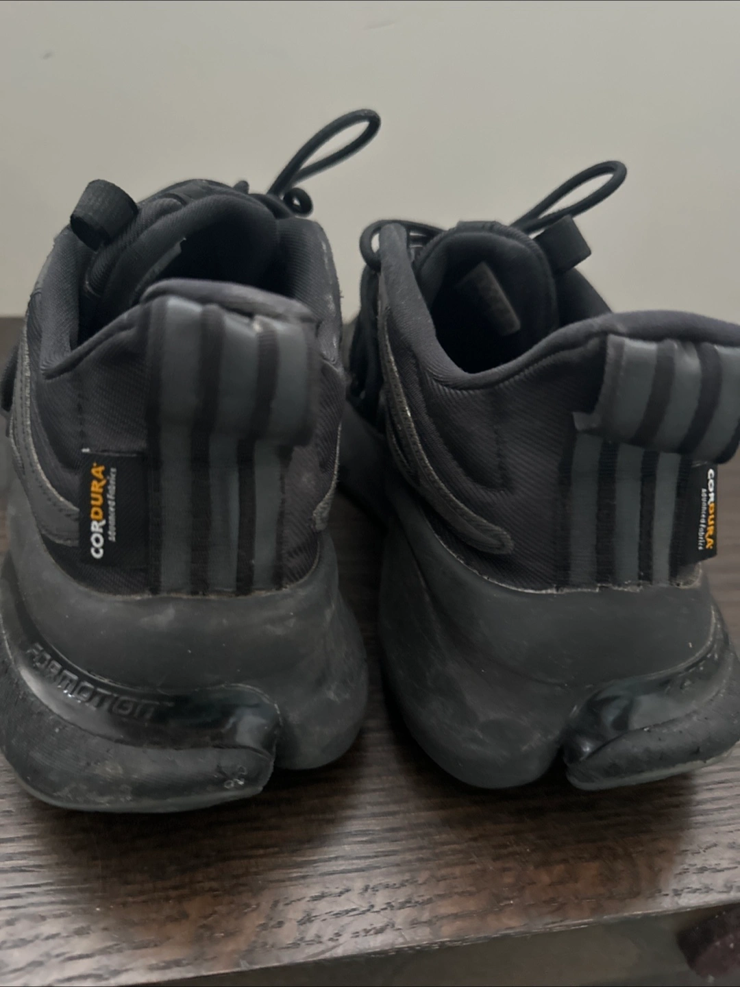Selling a pair of Adidas Formation sneakers in black! They are a US size 11. There is a label on the shoe that says "Cordura Advanced Fabrics"