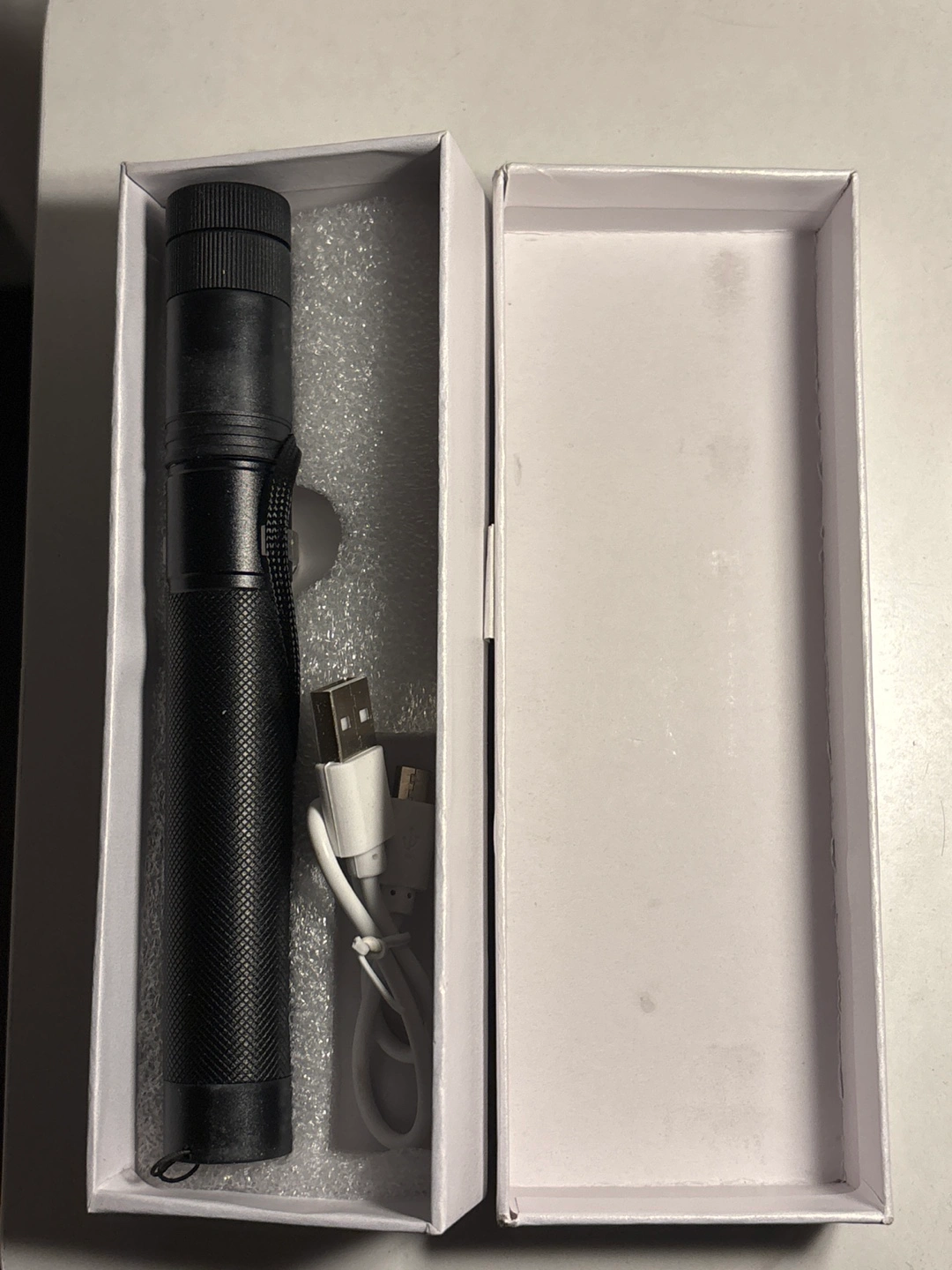 Selling a green laser pointer, comes with its original box and a charger. It's in great condition and ready for a new home!