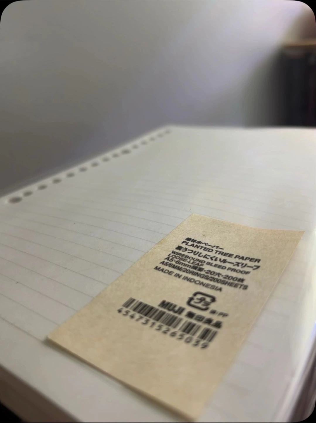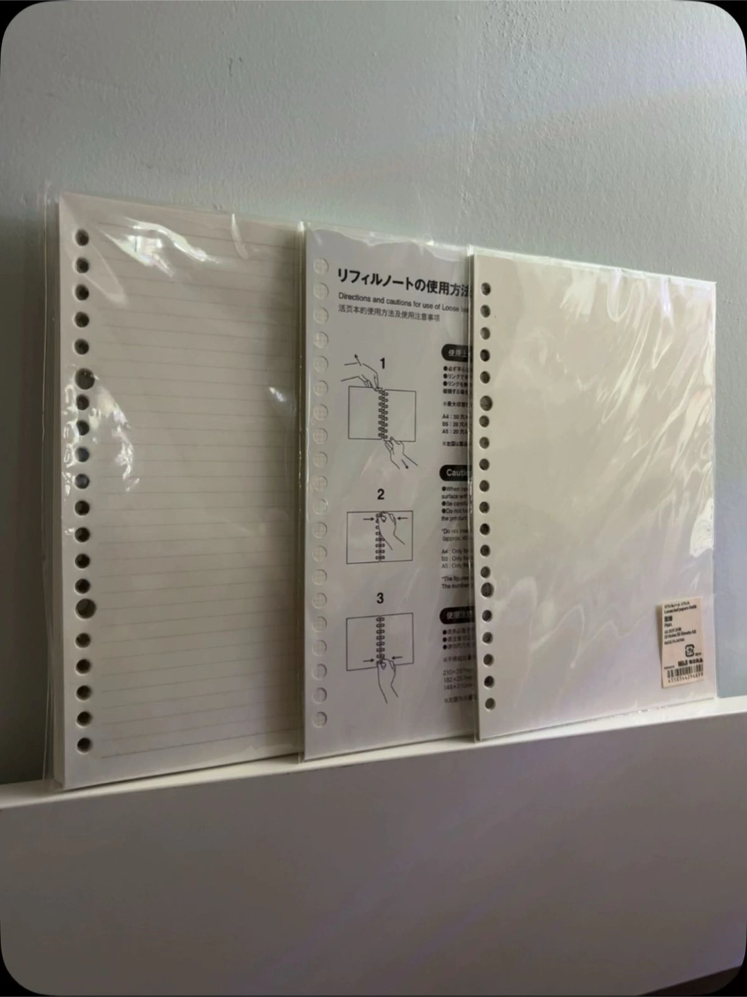 Selling a 3 packs of MUJI Planted Tree Paper loose leaf refills; blank, 2mm gridded and lined. They are all A5 size, with 20 holes.