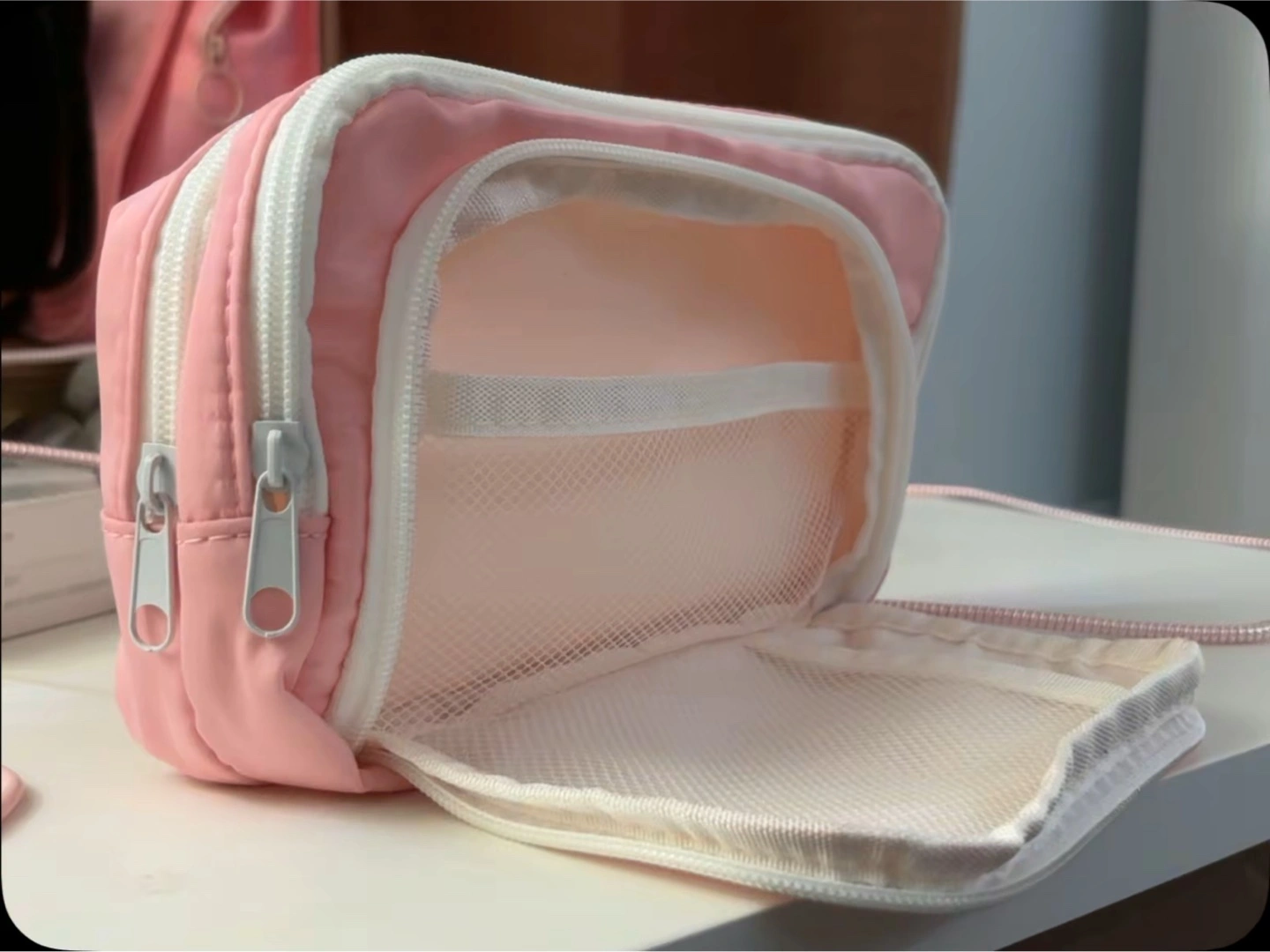Looking to keep your stationery organized? This cute pink pencil case has multiple layers and compartments to store all your pens, pencils, and other supplies! Perfect for students or organization purposes.