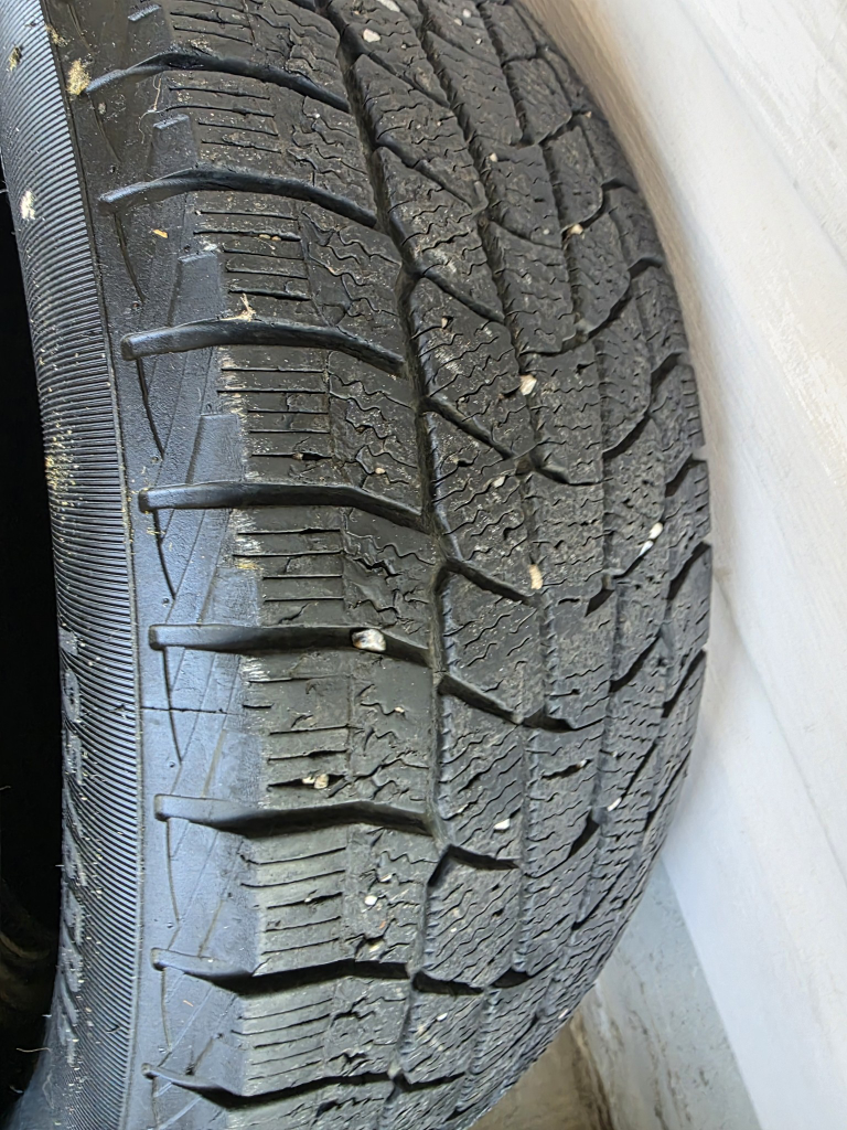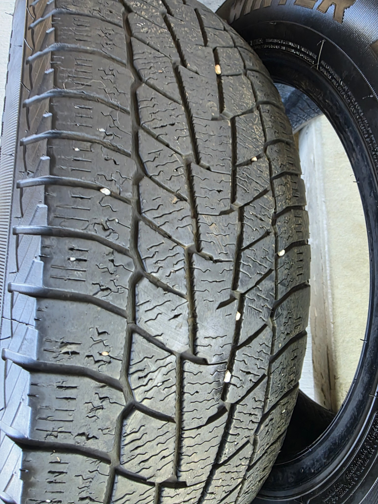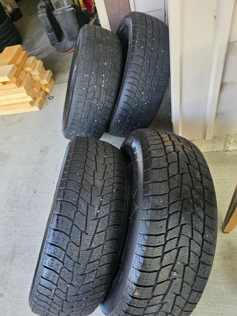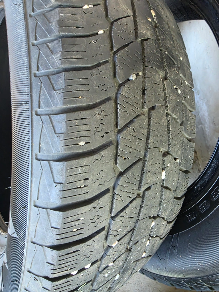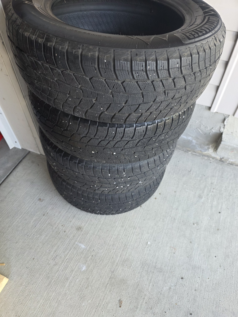 Selling a set of four Motomaster Winter Edge tires, size 195/65R15. These tires are designed for winter conditions and provide good traction on snow and ice. They are marked with the M+S symbol and the mountain snowflake symbol. Ready to keep you safe this winter season! one tire has a plug and holds air perfectly.
