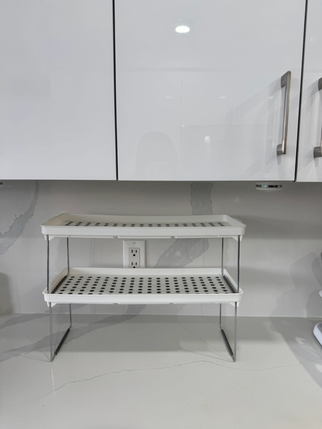 Selling a handy expandable shelf organizer! It's white and in great shape. Perfect for adding some extra storage space in your kitchen or pantry. The shelves are easy to assemble and adjust to fit your needs. Pick up at Steeles & Bathurst area. $5 for two.